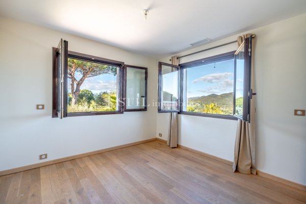 Verkauf der Villa Sainte-Maxime. Im begehrten und friedlichen Sémaphore-Gebiet befindet sich eine atemberaubende, zeitgenössische neue Villa, die aus hochwertigen Materialien gebaut wurde. Es umfasst: Eingangshalle, Gästetoilette, geräumiges Wohnzimmer mit Blick auf eine Terrasse, ausgestattete offene Küche und drei Schlafzimmer, jedes mit eigenem Badezimmer. Garage. Ein Schwimmbad bereichert den wunderschön gestalteten Garten. Möglichkeit zur Erweiterung um etwa 120 m².