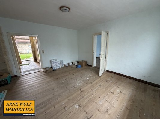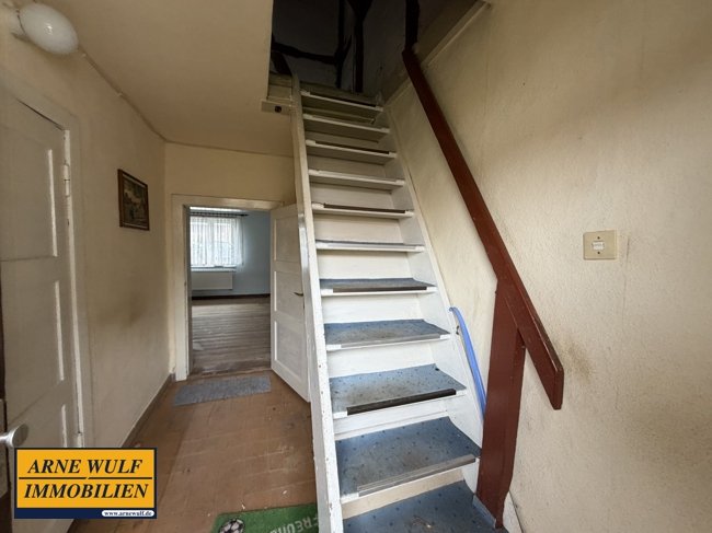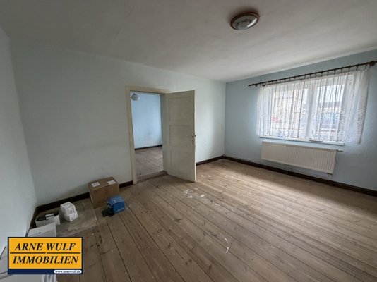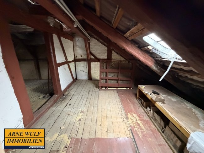 Im Erdgeschoss befinden sich Küche, ein Bad, Flur und zwei Zimmer. Das Dachgeschoss bietet mit einem Bodenraum und einem bereits zu Wohnzwecken genutzten Zimmer zusätzliches Potenzial.