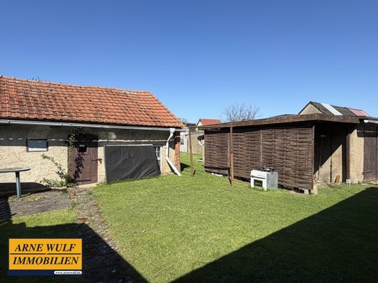Zum Anwesen gehören mehrere massive Nebengebäude, die aktuell als Garage, Werkstatt und Lager genutzt werden – ideal für Handwerker oder mit viel Platzbedarf.