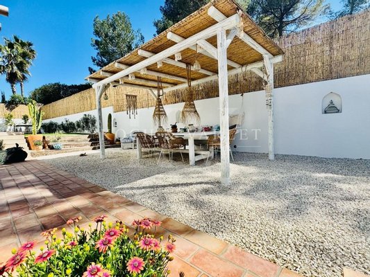 Les extérieurs ont été soigneusement conçus pour tirer le meilleur parti du mode de vie méditerranéen, combinant une cuisine estivale complète avec plusieurs espaces de restauration extérieurs qui vous invitent à partager des moments uniques dans un cadre privilégié. Des terrasses spacieuses et ensoleillées sont intégrées à des espaces détente chaleureux et à une piscine privée entourée d'espaces conçus pour le repos, tandis que différents environnements recouverts de pergolas en bois naturel apportent caractère et confort. Les espaces de détente, avec hamacs et lits balinais, complètent cet ensemble créant une véritable oasis privée d'inspiration exotique.
