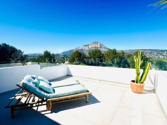 L'étage supérieur est réservé exclusivement à la suite parentale, un espace intime et sophistiqué comprenant un dressing, une salle de bain complète avec baignoire et douche, ainsi qu'un accès à une grande terrasse privée d'où l'on peut profiter d'une vue magnifique sur la mer et le Montgó.