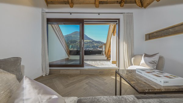 Das DG bietet eine Lounge, Galerie mit Dachuntersicht und eine Panoramaterrasse mit Fernblick.