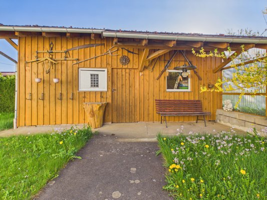 Geprägt von historischer Bausubstanz und beeindruckender Wohnfläche, erwartet Sie im Herzen von Blumberg dieses charmante Mehrfamilienhaus aus dem Jahre 1900. Mit seinen neun individuell gestalteten Räumen, verteilt auf zwei Etagen, bietet dieses gepflegte Objekt eine Wohnqualität der besonderen Art. Jedes Zimmer, ob im Erdgeschoss oder im Obergeschoss, beeindruckt durch seinen eigenen Charakter und den sichtbaren Holzbalken, die von der historischen Bauweise zeugen. Die vier Zimmer im Erdgeschoss bestechen durch ihre Großzügigkeit und Helligkeit. Hier finden Sie einen geräumigen Wohn- und Essbereich, der das Herzstück des Hauses bildet. Der Raum ist lichtdurchflutet und strahlt eine gemütliche Atmosphäre aus, die durch den Kachelofen im Wohnzimmer noch unterstrichen wird. Die Einbauküche ist voll ausgestattet, inklusive einem Holz-/Kohle-Herd und bietet genügend Platz für die Zubereitung kulinarischer Köstlichkeiten. Neben dem Wohn- und Essbereich befinden sich zwei weitere Zimmer im Erdgeschoss, die als Schlafzimmer oder Büro genutzt werden können. Ebenso findet sich hier ein Badezimmer. Im Obergeschoss des Hauses stehen Ihnen fünf weitere Zimmer zur Verfügung. Diese Räume können vielseitig genutzt werden, ob als Kinderzimmer, Gästezimmer oder als Arbeitsraum, die Möglichkeiten sind vielfältig. Ein weiterer Pluspunkt dieses Hauses ist der großzügige Ökonomieteil, der mit einer Fläche von ca. 117m² Stellfläche für 4 Fahrzeuge bietet und ebenso wie das Dachgeschoss enormes Ausbaupotential bietet. Der Garten lädt zum Entspannen ein und bietet genügend Platz für Kinder zum Spielen oder für gemeinsame Grillabende im Sommer.