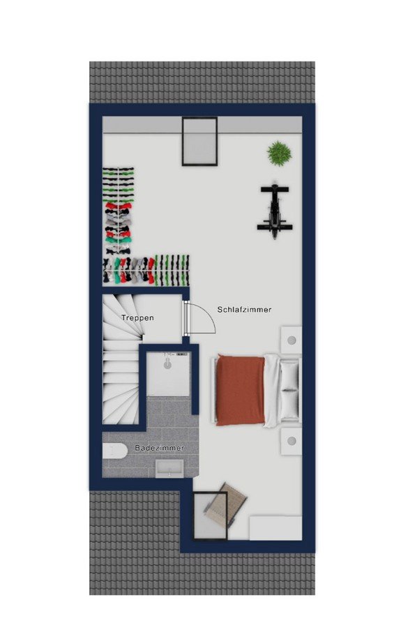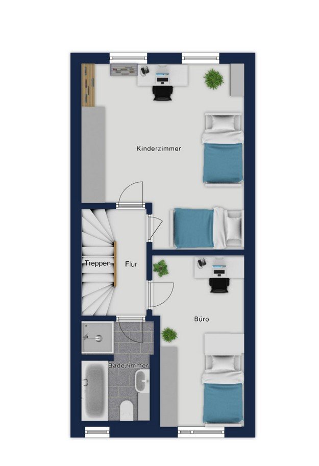 Das Haus verteilt sich auf drei Etagen und umfasst insgesamt vier Zimmer, darunter drei Schlafzimmer sowie zwei Badezimmer. Ein separates Gäste-WC erhöht den Wohnkomfort zusätzlich.