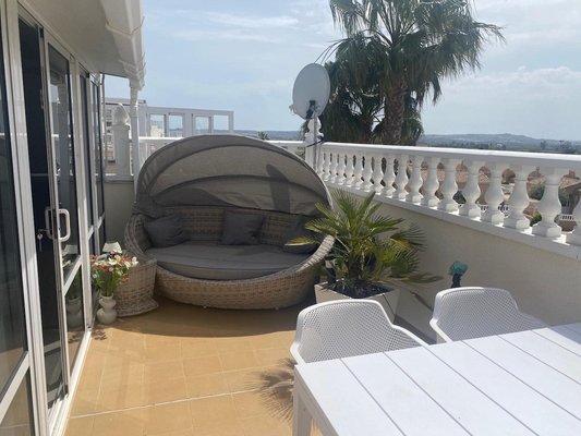 Die Villa verfügt unter anderem über ein Kamera-Überwachungs-System, Fenster mit Doppelverglasung, Rollläden und Sicherheitsgittern, Einbauschränke in den Schlafzimmern und zwei moderne Einbauküchen. Darüber hinaus haben das obere Schlafzimmer, sowie das Wohnzimmer unten neuwertige Klimaanlagen mit kalt/warm Funktion. Die Stromkosten werden durch eine Solaranlage auf dem Dach deutlich reduziert. Zum Haus gehört auch ein privater Kfz-Stellplatz auf dem Grundstück mit Carport. Das Haus ist modern möbliert und wird wie auf den Fotos abgebildet übergeben - mit Ausnahme einiger Möbel. Das Grundstück ist schön und pflegeleicht angelegt (künstliche Bewässerung) und verfügt neben einer modernen Außenküche über einen weiteren Terrassen-/Lounge-Bereich und einen Whirlpool. Im Außenbereich des Grundstücks befinden sich verschließbare Boxen mit weiterem Stauraum sowie eine Art Garagen-Box, die aktuell zum Abstellen mehrerer Fahrräder und von 2 Motorrädern genutzt wird.