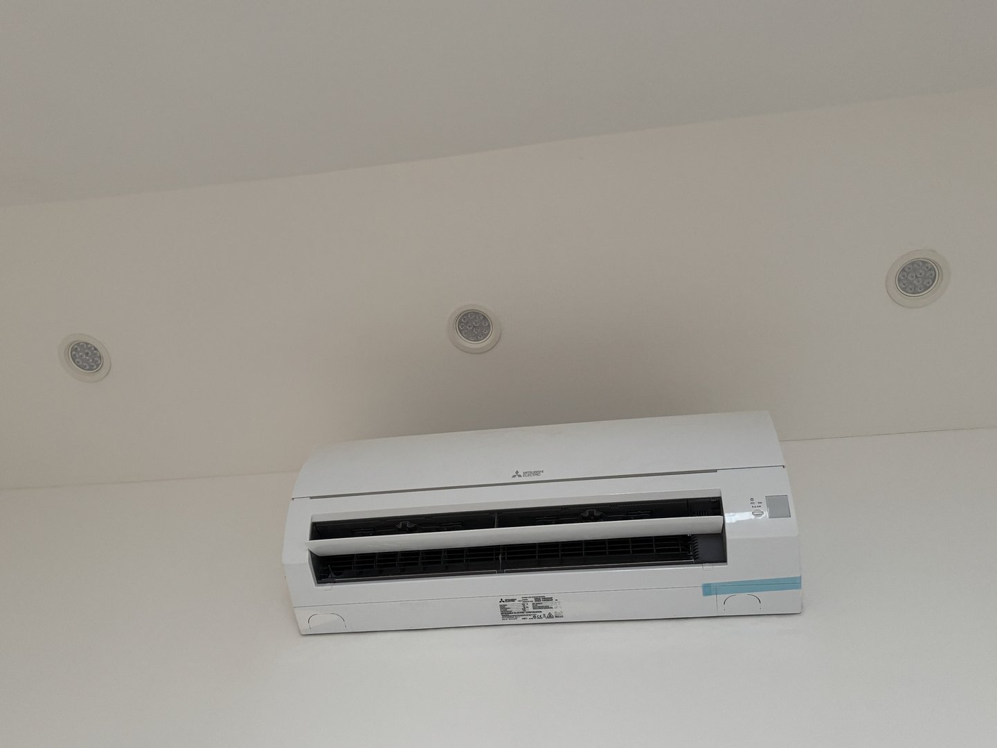 Die Wohnung ist vollständig klimatisiert und verfügt in allen Zimmern über eine Mitsubishi Electric Wärmepumpen-/Klimaanlage, die sowohl zum Kühlen als auch zum Heizen im energieeffizienten Wärmepumpenbetrieb genutzt werden kann – äußerst leise, effizient und zuverlässig.