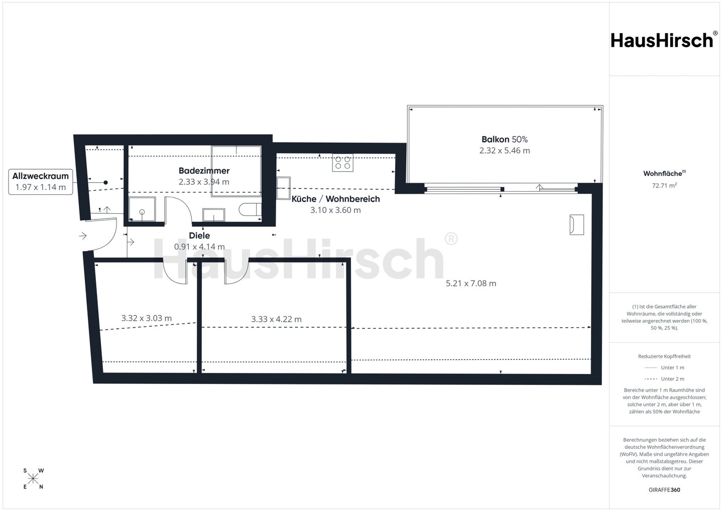 Dieses Exposé dient ausschließlich der Vorabinformation und stellt kein vertragliches Angebot dar. Maßgeblich sind allein die im notariellen Kaufvertrag getroffenen Vereinbarungen sowie die dort genannten Eigenschaften und Flächenangaben.
