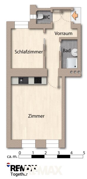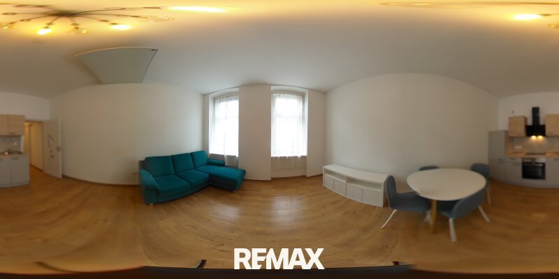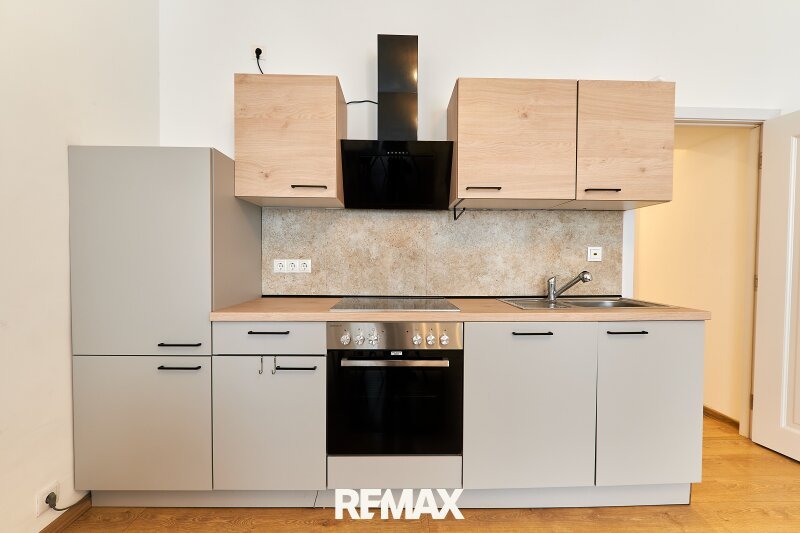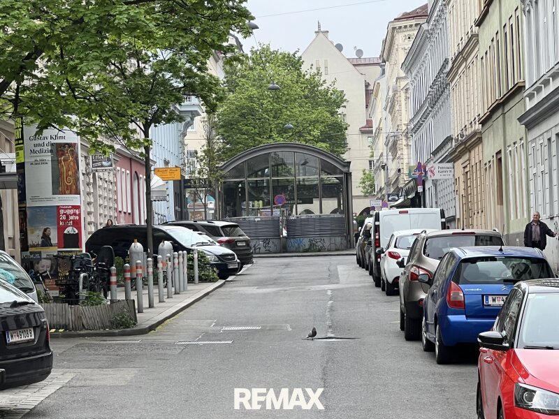 Das Wohnzimmer ist zur Goldschlagstraße ausgerichtet und präsentiert sich offen und einladend. Das Schlafzimmer liegt ruhig im Innenhof und bietet eine angenehme Rückzugsmöglichkeit. Die moderne Wohnküche ist geschmackvoll gestaltet und bildet das Herzstück der Wohnung.