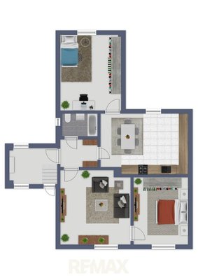 Die beiden Schlafzimmer weisen eine angenehme Größe auf. Das Badezimmer ist vollständig verfliest und mit einem Waschbecken, einer Badewanne sowie einem WC ausgestattet. Es liegt kein offenes Wohnkonzept vor, da die Wohnräume durch Türen klar voneinander getrennt sind.