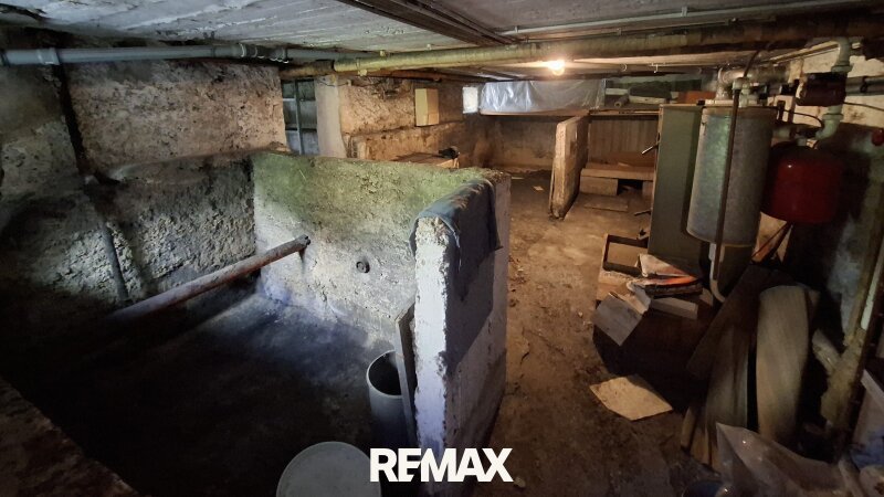 Der Keller umfasst zwei Räume, einen Abstellraum sowie einen Heizraum mit der entsprechenden technischen Ausstattung. Es handelt sich dabei um einen klassischen, nicht sanierten Kellerbereich. Aufgrund des Zustands der Wände und Böden eignet sich der Bereich derzeit vorwiegend für Lagerzwecke oder als Werkstatt. Eine Umgestaltung zu Wohnzwecken wäre zwar grundsätzlich denkbar, würde jedoch einen erheblichen Sanierungsaufwand erfordern.