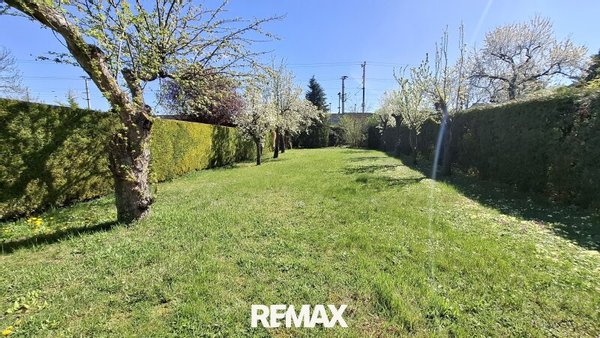 Der Garten bietet eine weitläufige Fläche und ist durch natürliche Bepflanzung von der benachbarten Haushälfte abgegrenzt, wodurch ein gewisses Maß an Privatsphäre entsteht.