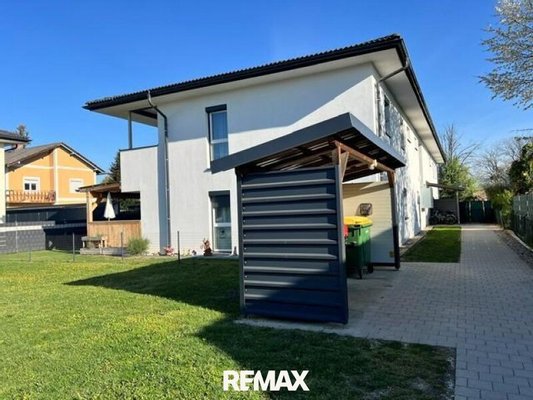 Zur Wohnung gehört außerdem ein Carport-Stellplatz und ein freier Parkplatz.