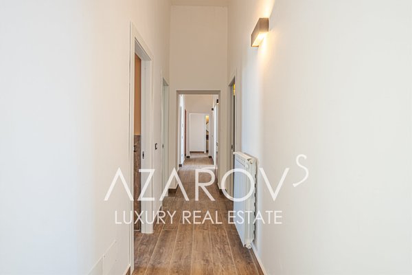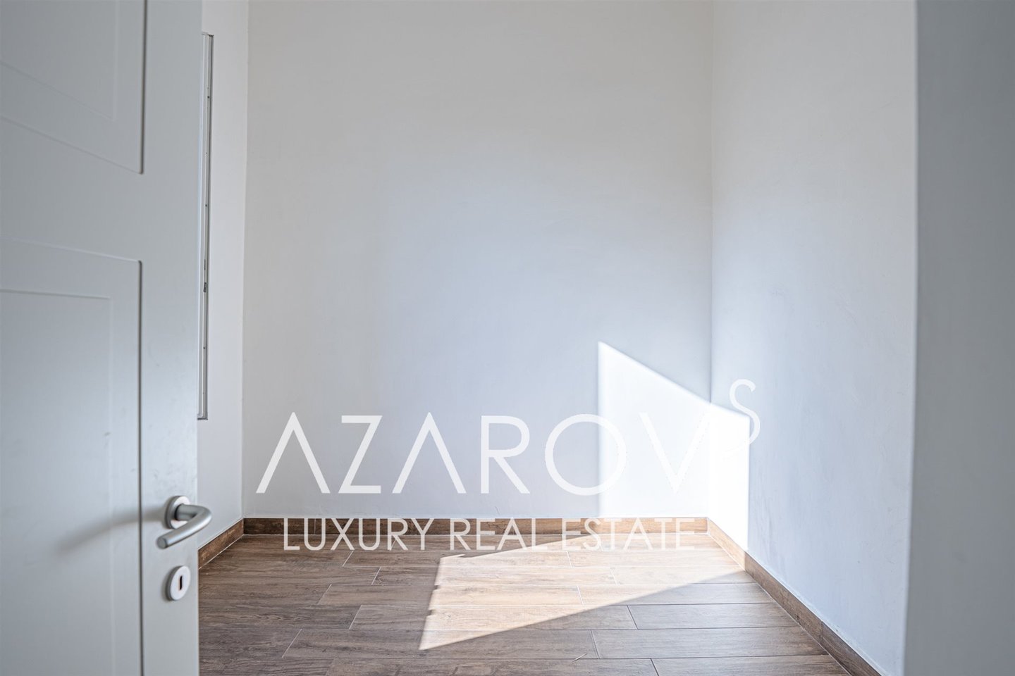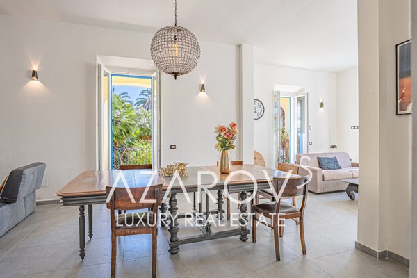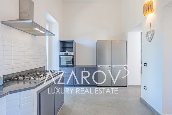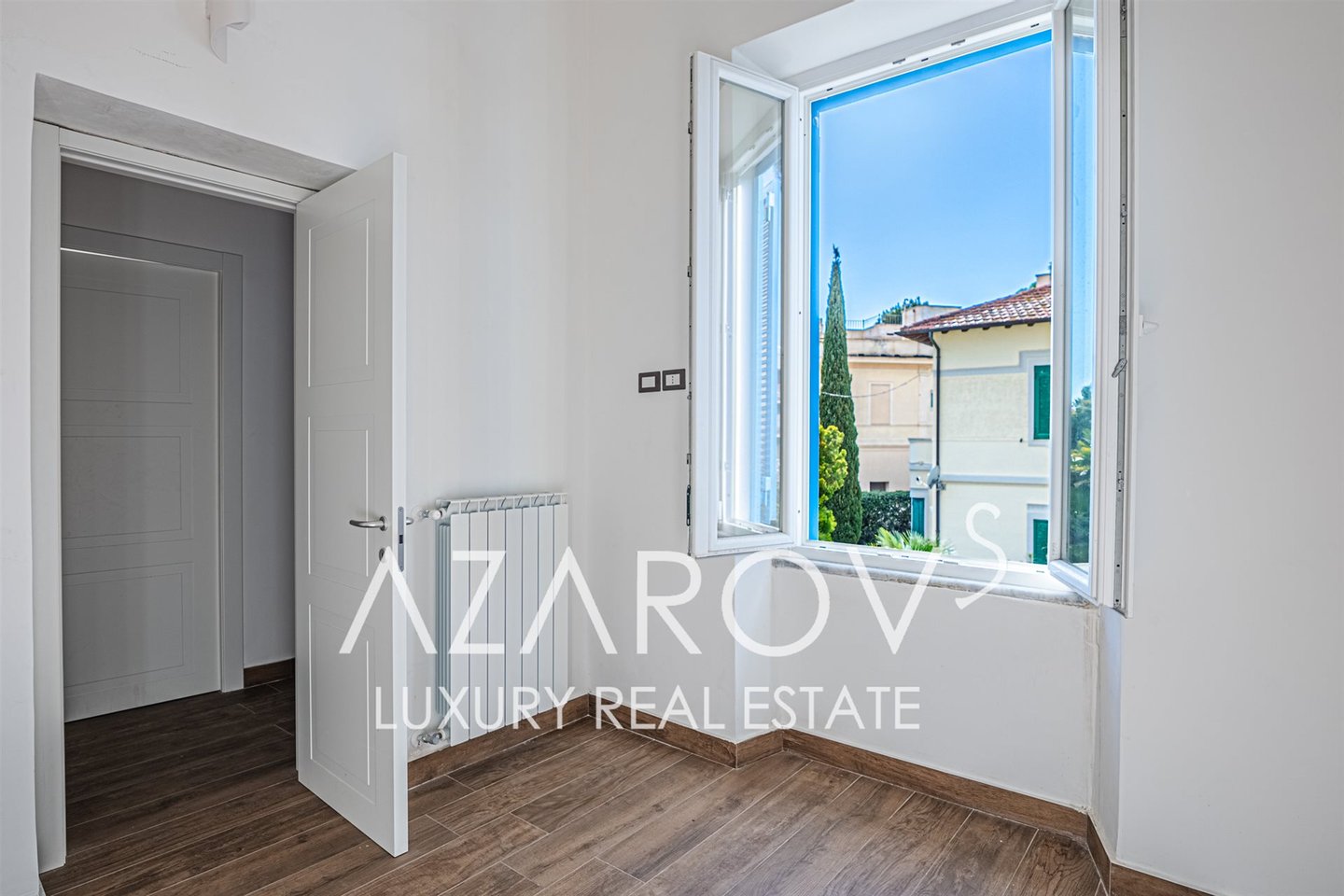Im Erdgeschoss befindet sich ein großzügiges formelles Wohnzimmer mit charakteristischen Liberty-Stilelementen, ein helles Esszimmer, eine moderne, komplett ausgestattete Küche, ein Schlafzimmer und zwei Bäder. Die Innenräume sind von natürlichem Licht durchflutet und schaffen eine Atmosphäre raffinierter Eleganz.