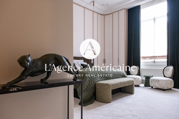 Im Herzen des prestigösen « Triangle d’Or » von La Muette, im zweiten Stock eines ehemaligen privaten Herrenhauses mit Aufzug und Concierge, wurde diese außergewöhnliche 166 m² große Wohnung von einem Architekten vollständig neu gestaltet und nach