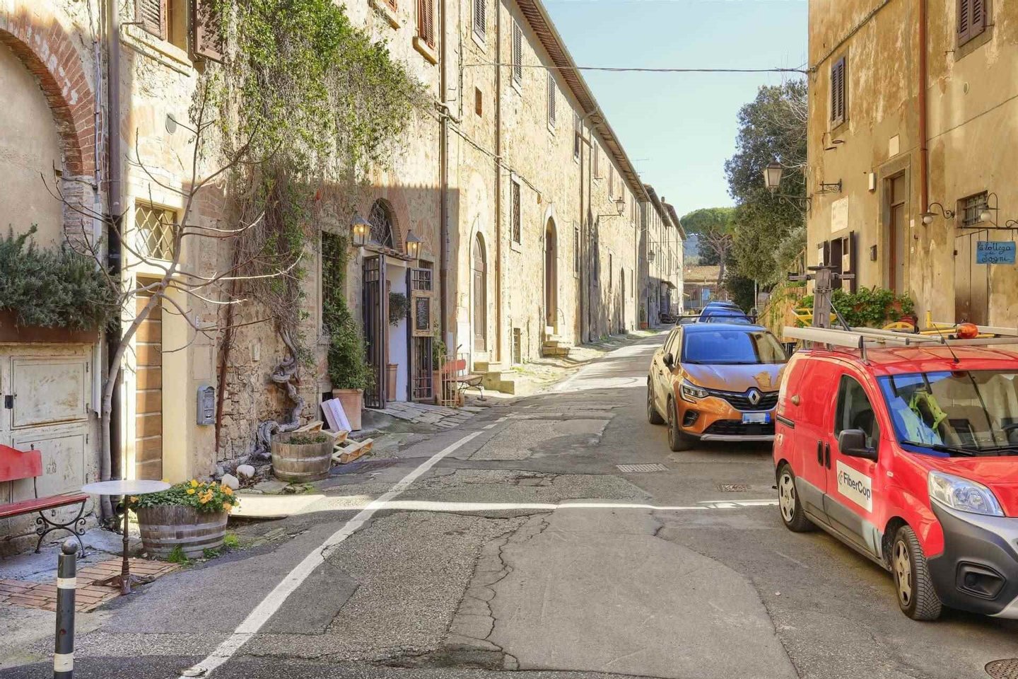 Die Immobilie besticht durch eine privilegierte Lage, die es ermöglicht, die Magie des Dörfchens vollständig zu erleben – zwischen historischen Weinbars und handwerklichen Boutiquen. Die großen Fenster bieten einen außergewöhnlich offenen Blick, der die umliegenden Weinberge und sanften Hügel bis zum blauen Meer am Horizont umfasst. Eine außergewöhnlich seltene Eigenschaft im historischen Zentrum ist das Vorhandensein eines Aufzugs, was diese Lösung äußerst praktisch macht. Dank seiner strategischen Lage und dem zeitlosen Charme von Bolgheri stellt diese Immobilie eine sichere Investition für den internationalen Ferienvermietungsmarkt oder eine unvergleichliche charmante Residenz dar.