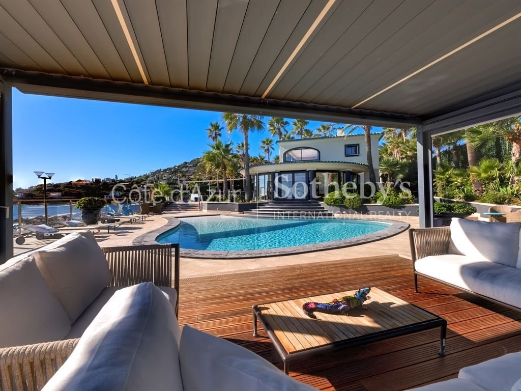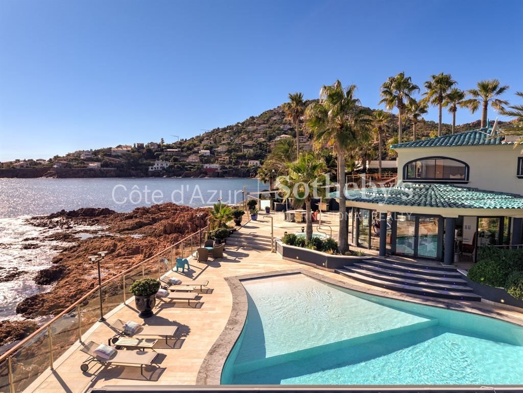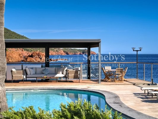 Lage zwischen Cannes und Saint-Tropez, am Meer an der Corniche d'Or in Anthéor, profitiert diese außergewöhnliche Villa von einer seltenen Lage in einer gesicherten, abgeschlossenen Anlage.