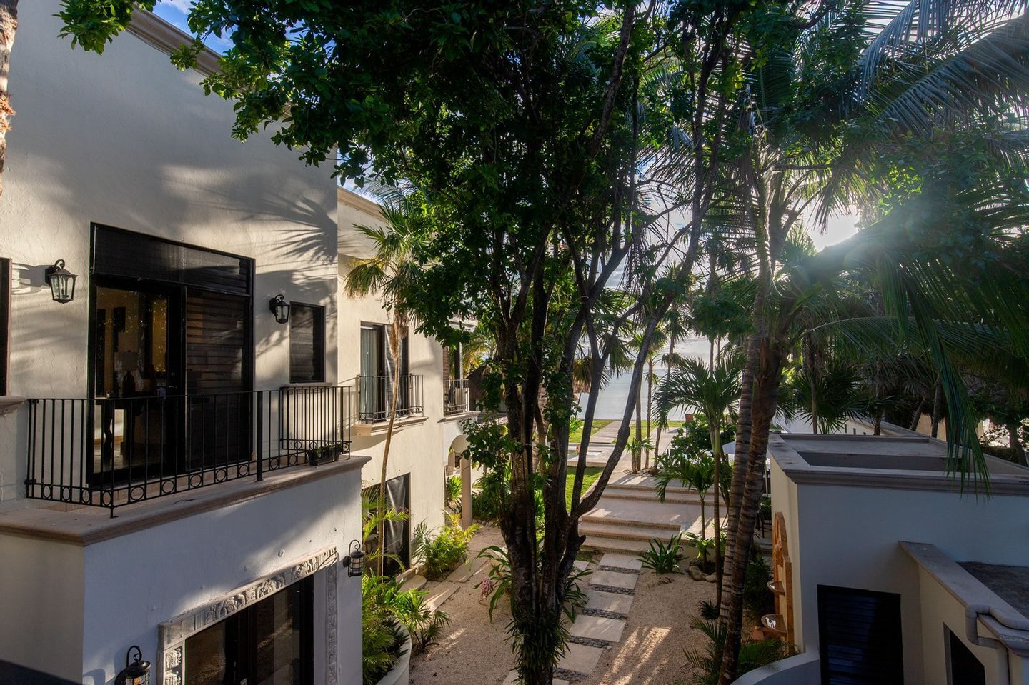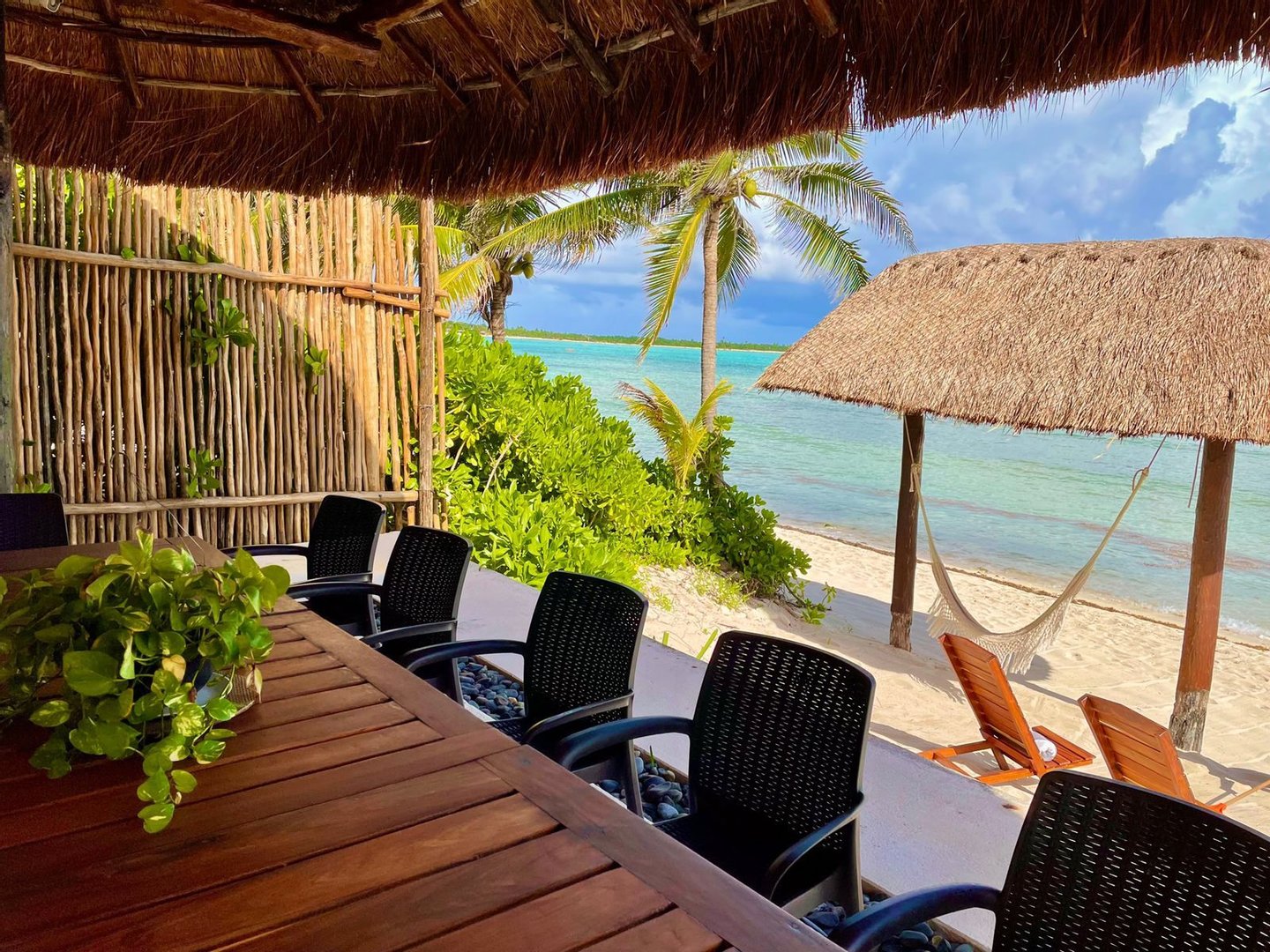 Dieses exquisite Haus an der Karibikküste Mexikos, nördlich von Tulum an der Riviera Maya. Dieses üppige tropische Paradies liegt in der Bucht von Suleiman und bietet eine Oase der Ruhe und des Friedens mit einem warmen Strand. Architektur im