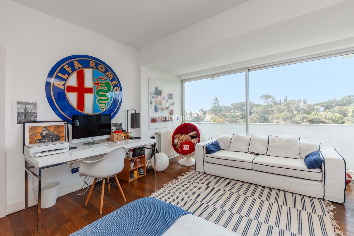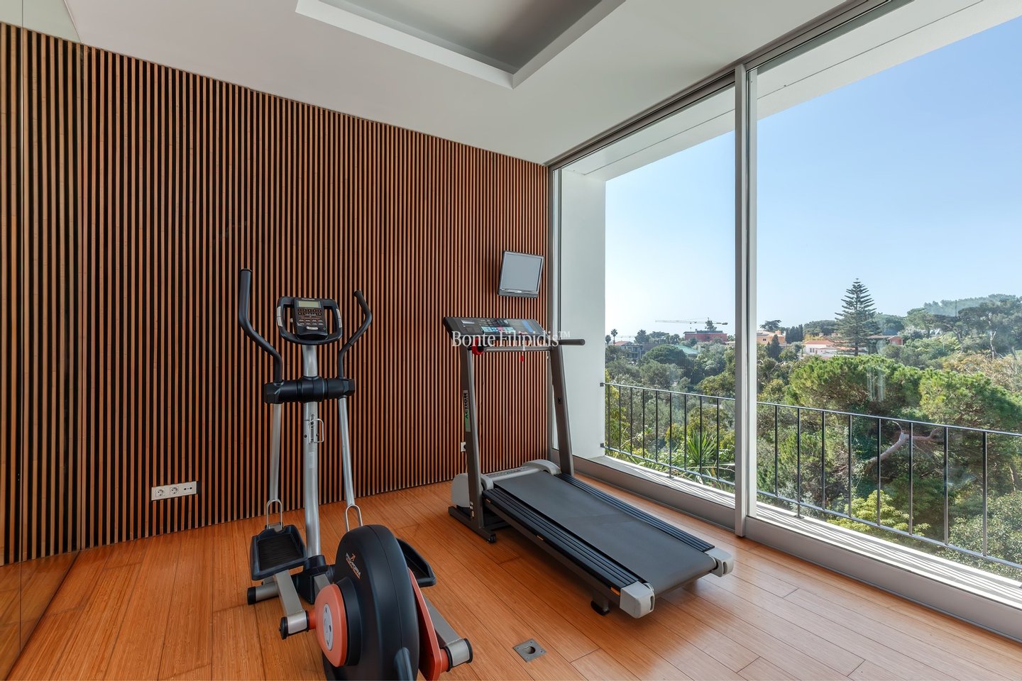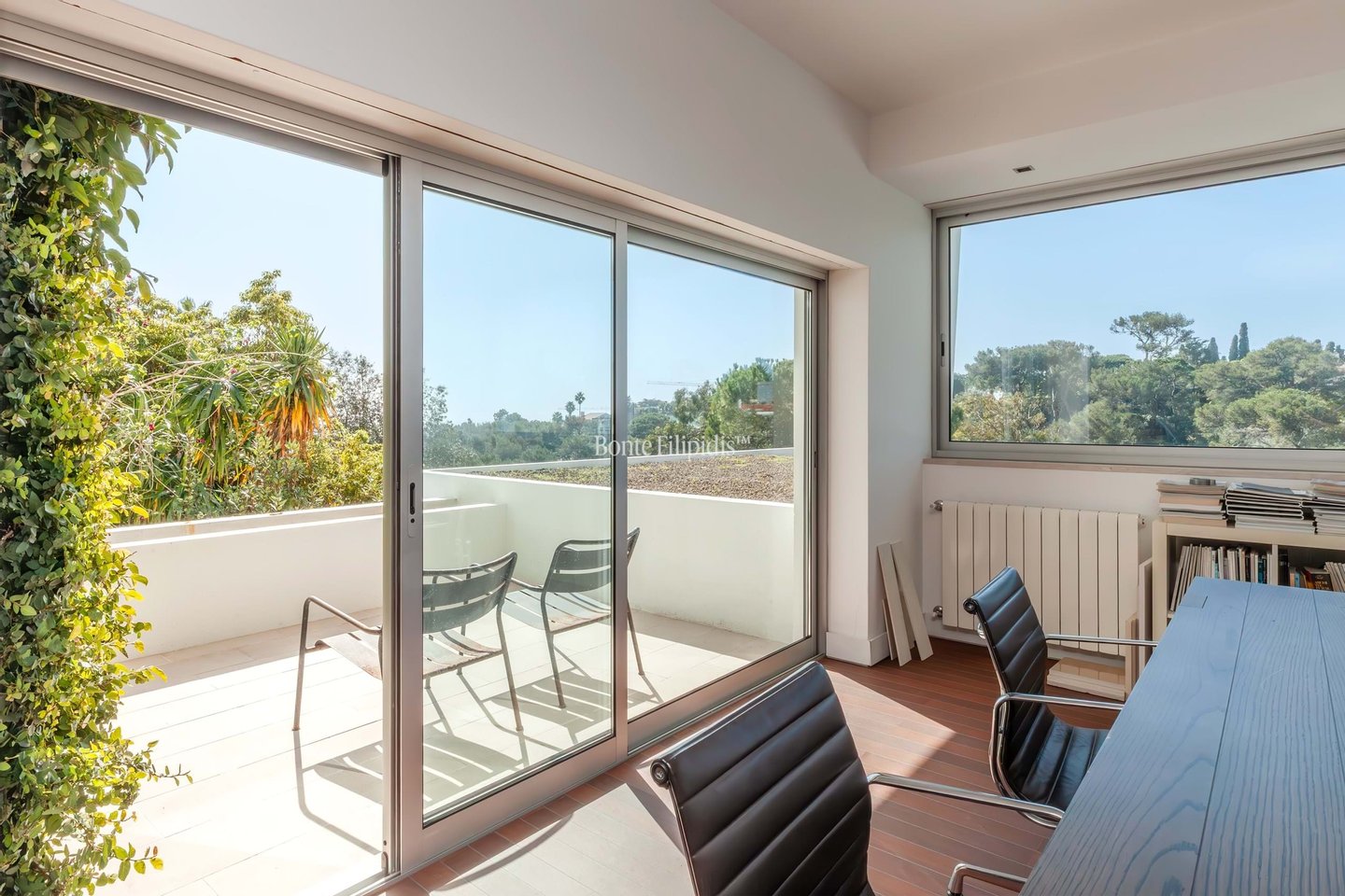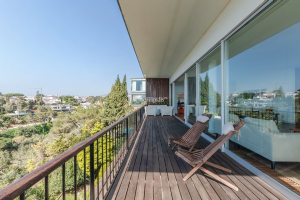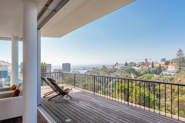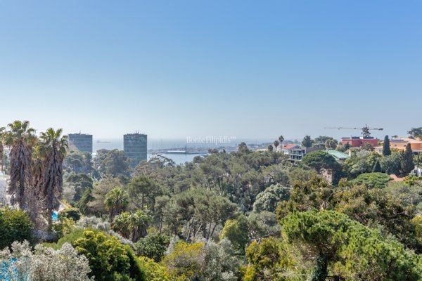 Overlooking the treetops of Parque Palmela and the open horizon of Cascais Bay, this 4 bedroom villa in Monte Estoril enjoys a rare vantage point within one of the coastlines most distinguished residential addresses. Set on a 1,600 sqm plot with a total construction area of 801 sqm, the residence unfolds across four levels connected by an elevator and is defined by generous volumes, abundant natural light, and uninterrupted views over the park and the Atlantic Ocean.