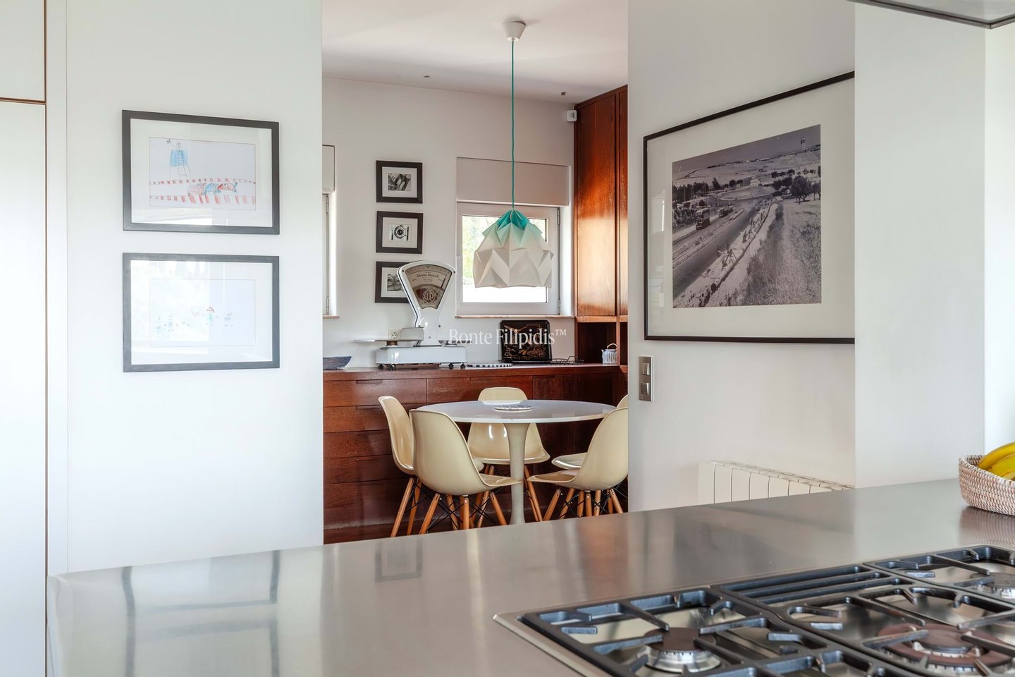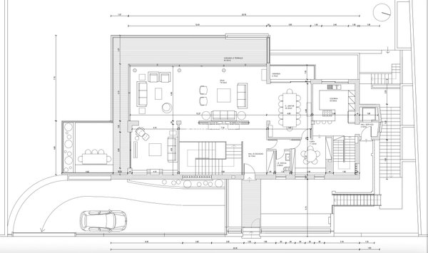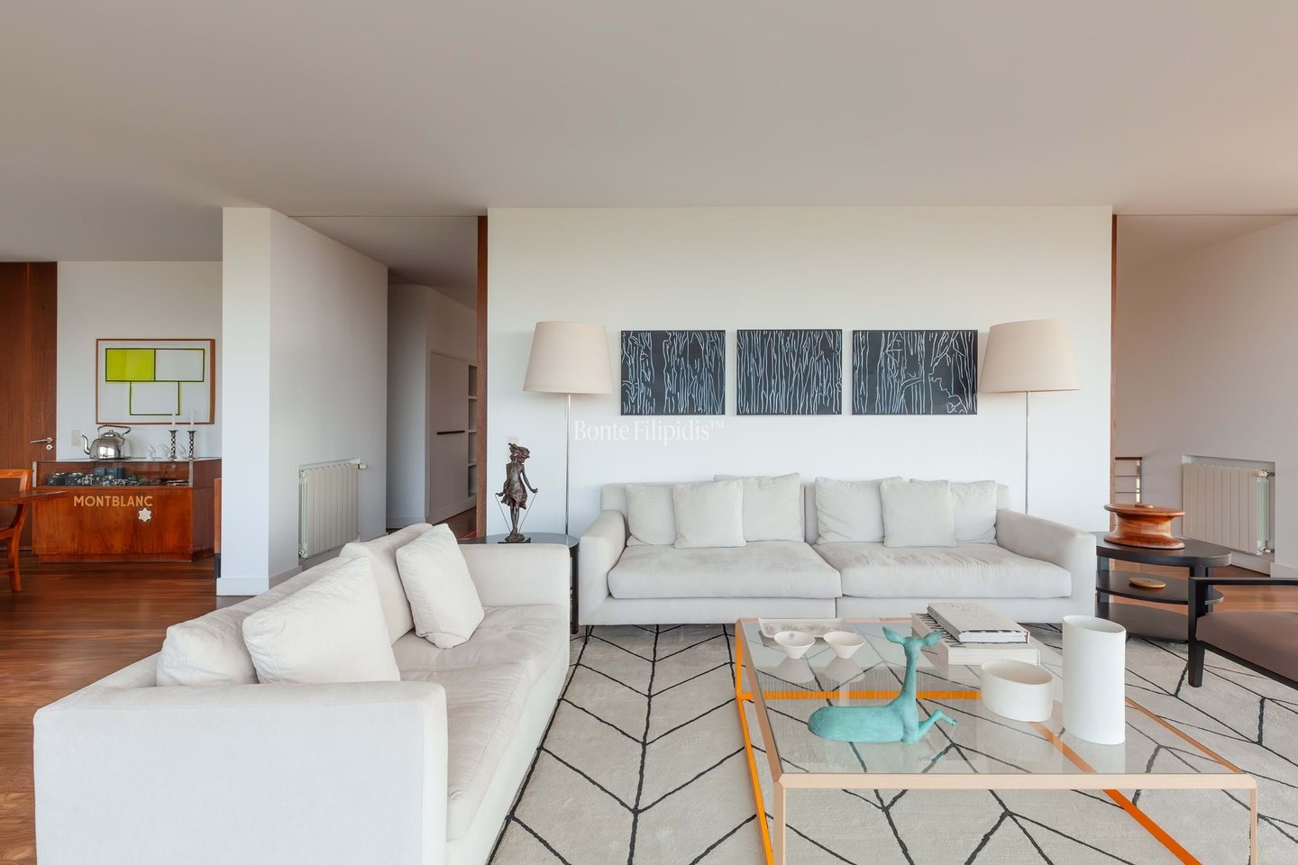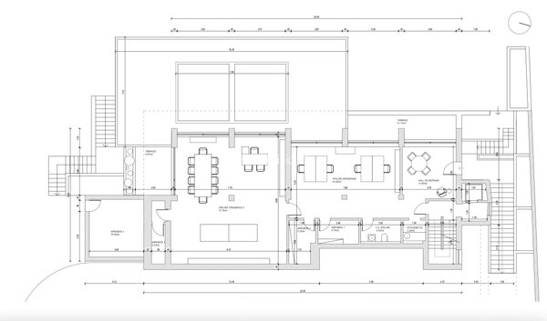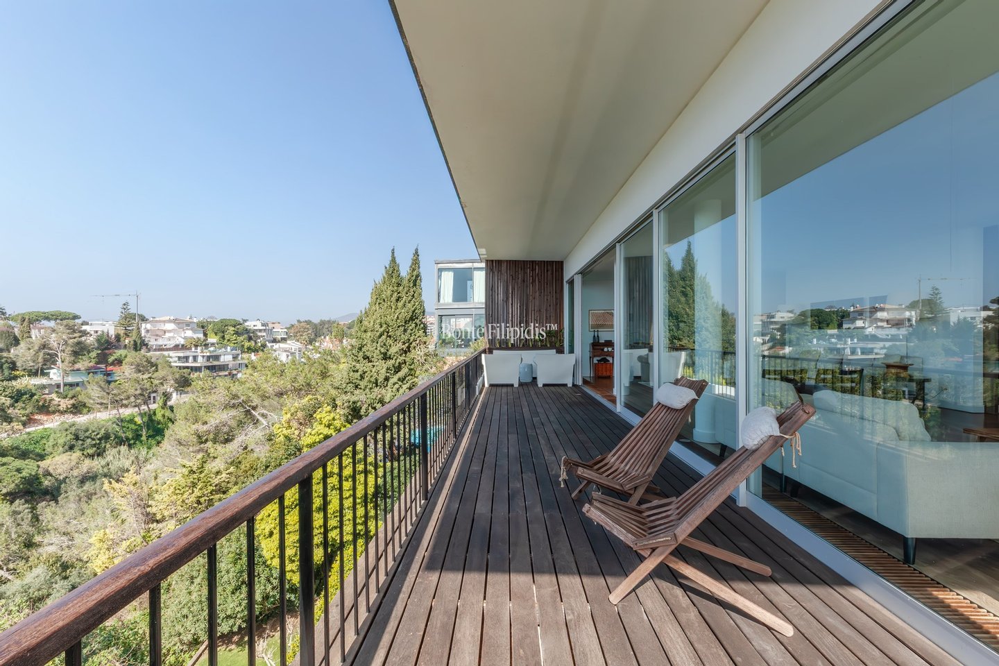 The main level is centred around an impressive 100 sqm living and dining area arranged in three distinct sitting zones. Each space opens onto a panoramic wraparound terrace, creating a seamless connection between interior living and the surrounding landscape. A spacious kitchen with a breakfast area connects naturally to the dining space, offering an elegant yet practical setting for both everyday living and entertaining.