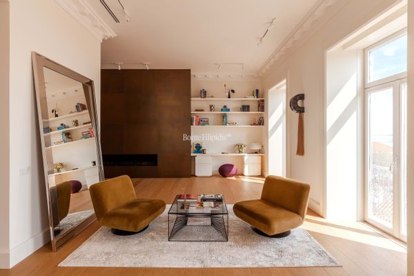 Discover 390 sqm of refined living in one of Lisbons most prestigious addresses, Rua Vitor Cordon in Chiado. This fully renovated apartment features four en-suite bedrooms, a sleek American-style kitchen, and soaring 3.90m ceilings with stunning frontal views of the river.