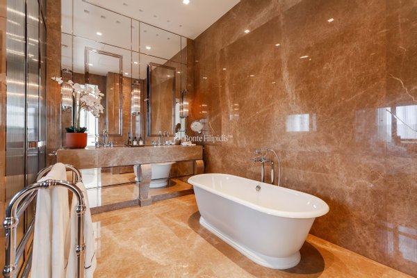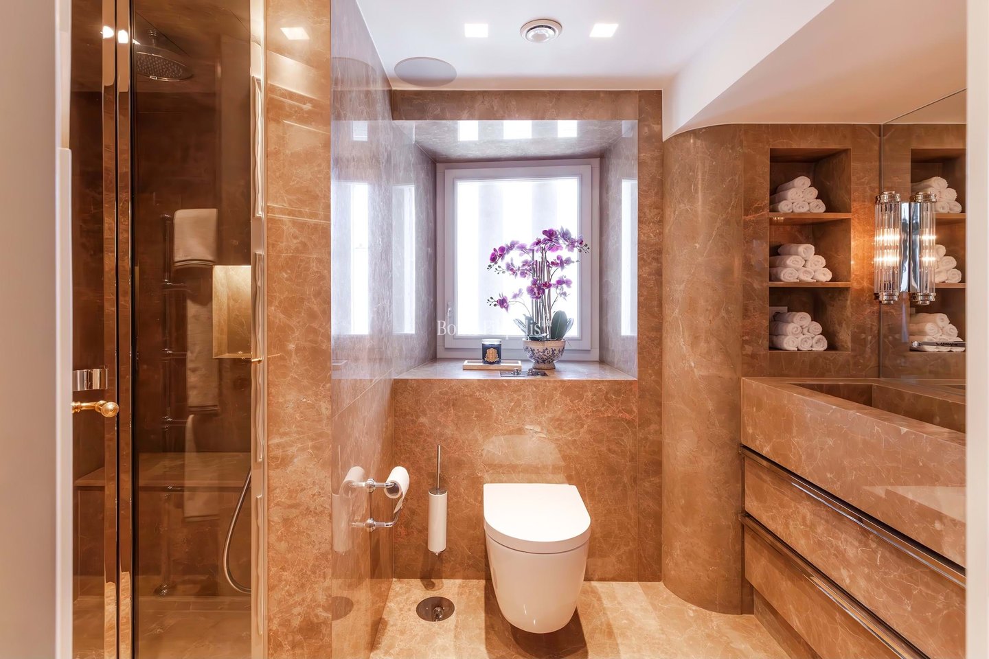 Every detail has been thoughtfully designed, combining bespoke finishes, designer bathrooms, and custom closets with luxurious natural stone throughout. The space evokes the elegance of a five-star residence in New York or London, while retaining the warmth and intimacy of a classic townhouse.
