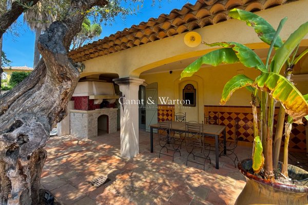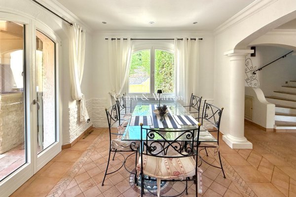 Canat & Warton Saint-Raphaël Les Golfs 04 94 17 10 51 Nestled between the Mediterranean and the Massif de L'Estérel, Saint Raphaël shines with the beauty of its coastline and its relaxed lifestyle! In a luxury residential area, bastide style villa nestled in lush greenery offering high quality services. Facing south and opening onto a wooded garden planted with Mediterranean species and its terraces which invite you to relax. You will be seduced by its various services, ironwork, fountain, 6 rooms of 222 sqm useful including: kitchen open to a large living room of 51 m2 with fireplace, a bedroom, a bathroom with toilet. Upstairs: 2 bedrooms, one with a solarium, an office, a shower room with toilet. In the basement: office, gym, sauna with shower and toilet. Ideal location between Cannes and Saint-Tropez about 1 hour from Nice Airport, 15 minutes from the TGV station, shops, golf courses, tennis club and beaches 5 minutes away and many walks or mountain bike rides accessible just near the property . Tel: 04 94 17 10 51
