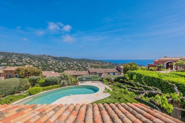 Golf of Saint-Tropez, Les Issambres – within a secured residence with concierge, pool, tennis court, playground, and pétanque court, this magnificent estate benefits from an exceptional sea view and has its own private pool.