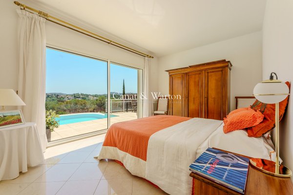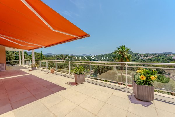 ST RAPHAEL VALESCURE In a secure and quiet domain, this contemporary style villa offers a panoramic view over the golf courses and the Esterel. This three-storey property features a spacious livingroom, a fitted kitchen, 5 bedrooms included 1 master bedroom, a study and a fitness room. Car Garage. High quality appointments.