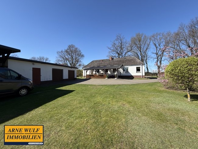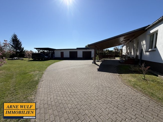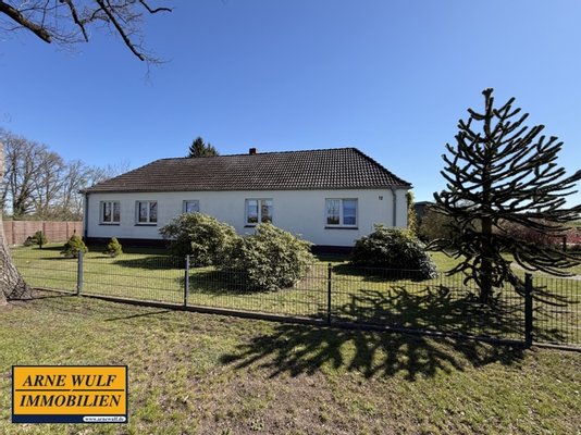 Das Wohnhaus befindet sich auf einem idyllisch angelegten, ca. 6.100 m² großen Grundstück in Raduhn am Rand der Lewitz. Es liegt am Dorfrand in ruhiger Lage, angrenzend an Felder und Wiesen.