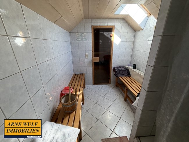 Im Erdgeschoss befinden sich vier Wohnräume, ein Flur, ein Badezimmer sowie die Küche. Im Dachgeschoss stehen eine Sauna mit Dusche sowie ein Bodenraum zur Verfügung.