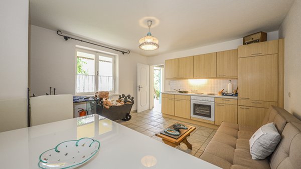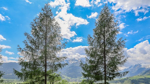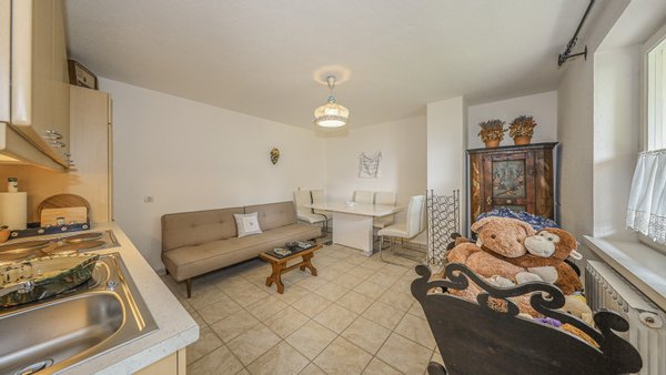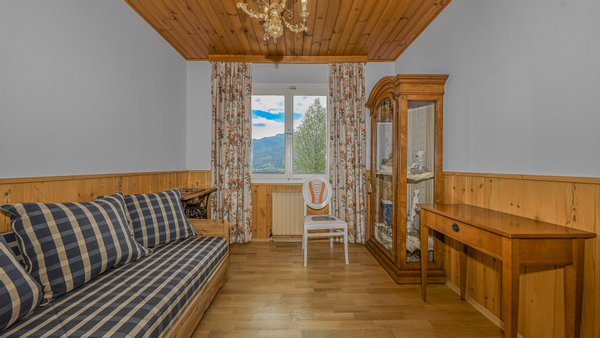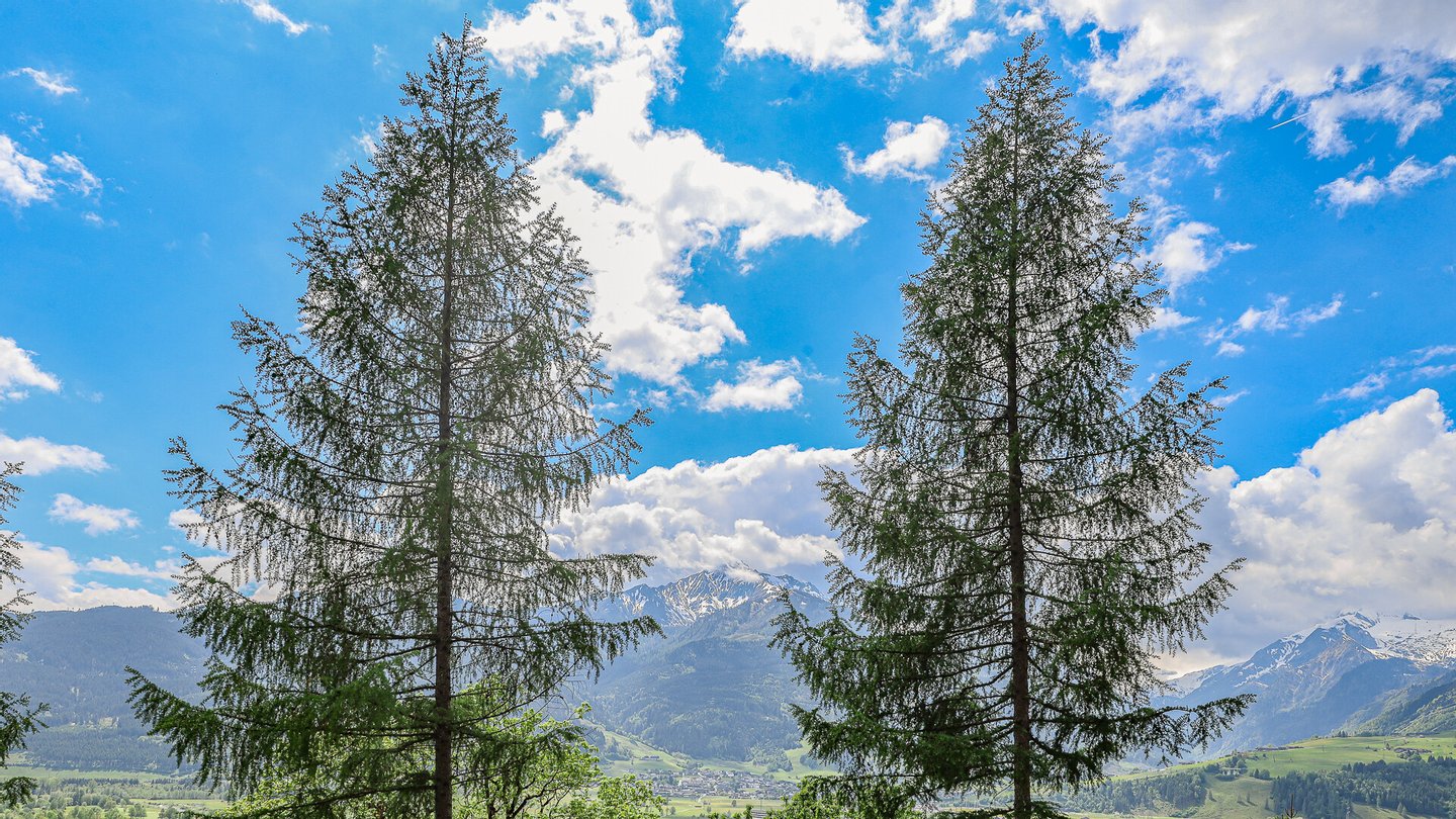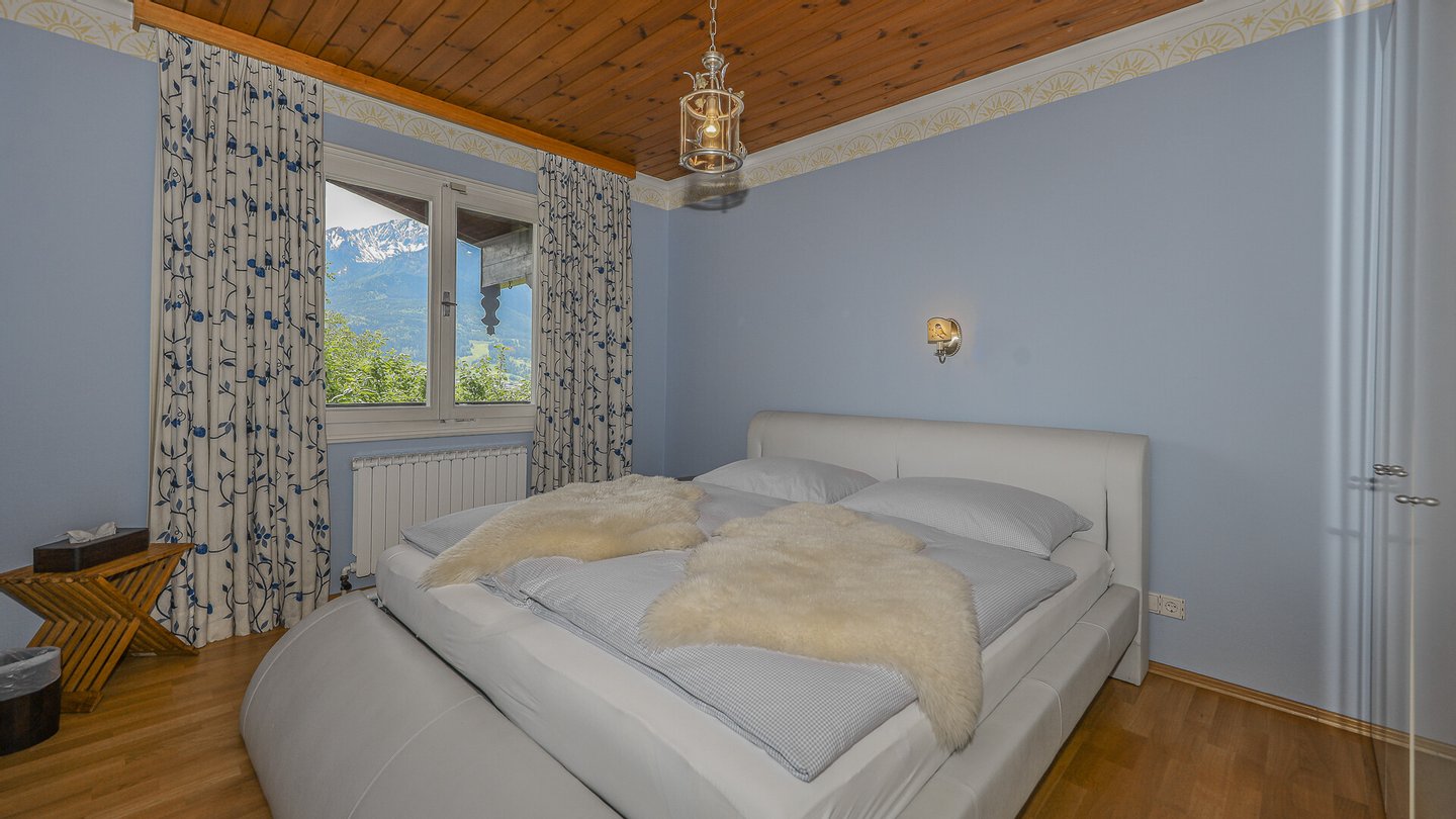 Vom Wohnzimmer kommt man auf den südseitig gelegenen Balkon mit einem phantastischen über 180-Grad Rundumblick auf die Bergwelt und die Natur. Weiters gelangt man über einen Ausgang auf die Terrasse und in den Garten.