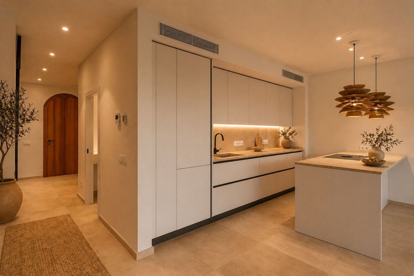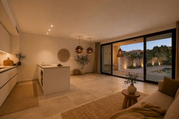 Elegantes Neubau-Stadthaus in Santanyí mit mediterranem Patio und luxuriöser Dachterrasse