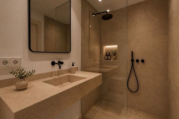 Bereits beim Eintreten offenbart sich die besondere Qualität dieser Immobilie: Naturstein, warme Holzelemente und klare Linien schaffen ein harmonisches Gesamtbild mit mediterranem Charakter. Großzügige Fensterflächen sorgen für ein helles, freundliches Ambiente und fließende Übergänge zwischen Innen- und Außenbereichen.