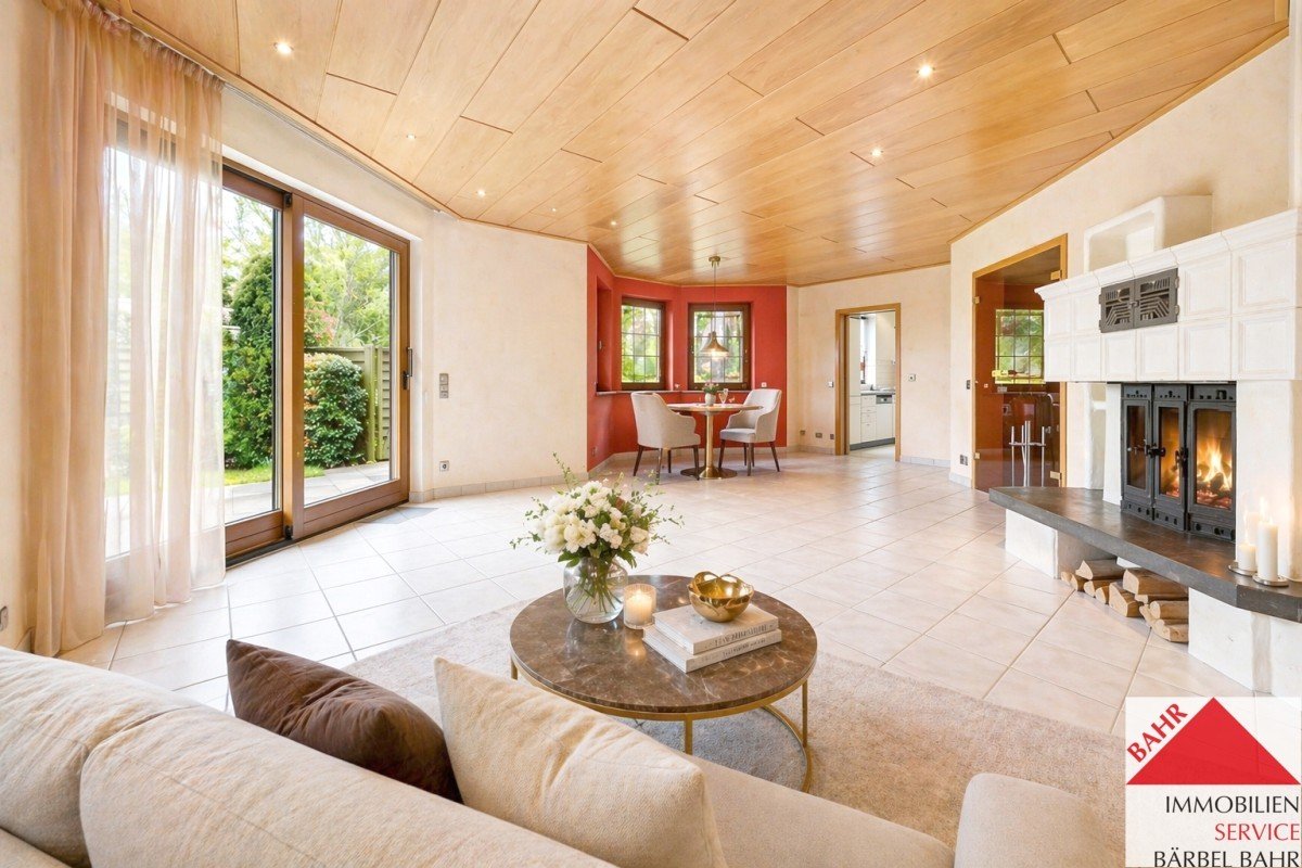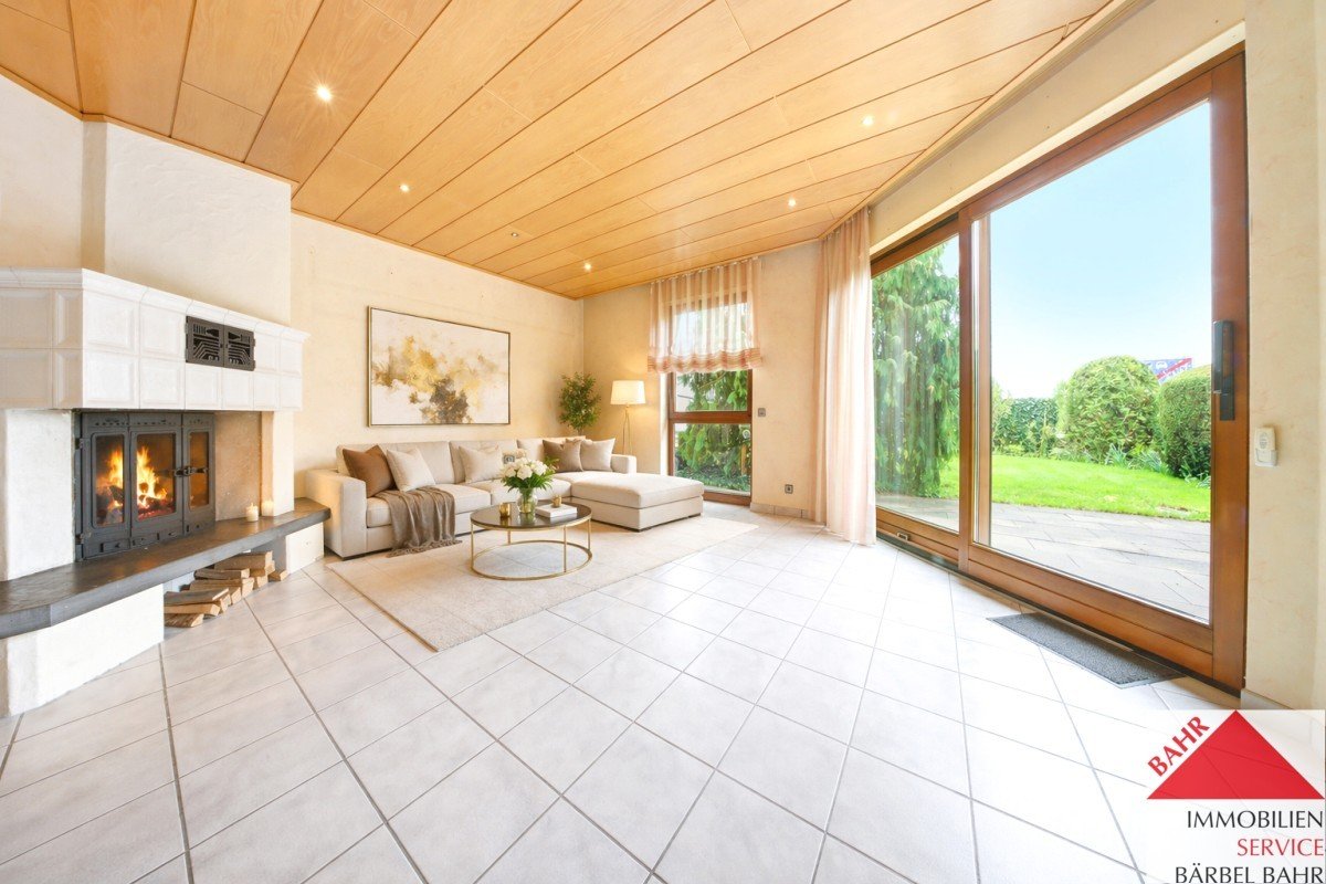 Hauswirtschaftsraum in der Wohnung, großes Wohnzimmer mit Kaminofen, Südwest-Terrasse mit Markise, Garten…alles da!