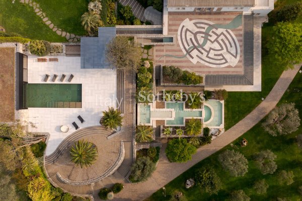 Ergänzt wird das Anwesen durch eine großzügige Garage von ca. 365 m² sowie einen etwa fünf Hektar großen Olivenhain, ideal nach Süden ausgerichtet und sonnenverwöhnt und ein wesentliches Merkmal dieses besonderen Objekts.