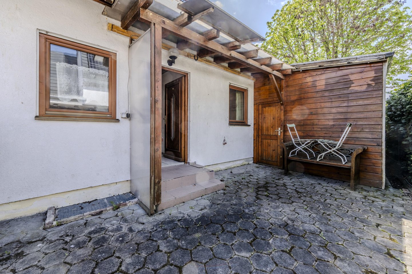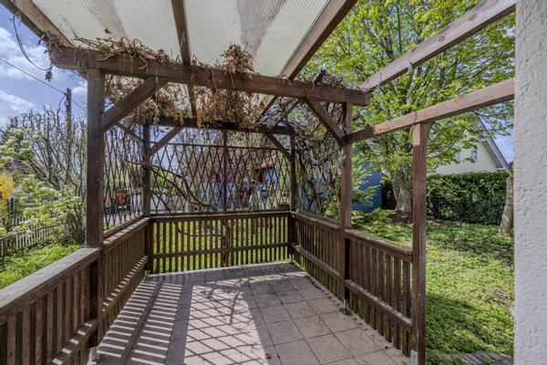 Dieses Einfamilienhaus aus dem Baujahr 1995 wurde in solider Holzständerbauweise errichtet und bietet mit ca. 133 m² Wohnfläche ausreichend Platz für die ganze Familie. Die Wohnfläche verteilt sich auf zwei Etagen – das Erdgeschoss sowie das Dachgeschoss – und umfasst insgesamt fünf Zimmer. Im Erdgeschoss befinden sich das großzügige Wohnzimmer mit direktem Zugang in den herrlichen Garten, die Küche mit angrenzender praktischer Speisekammer, ein Badezimmer, sowie ein Schlafzimmer. Ein Teil der Terrasse wurde bereits zu einem Wintergarten umgebaut ca. 3 m², wodurch ein zusätzlicher, lichtdurchfluteter Aufenthaltsbereich oder auch Abstellbereich entstanden ist. Der dazugehörige Garten präsentiert sich ruhig gelegen und bietet viel Potenzial zur individuellen Gestaltung. Das Dachgeschoss beherbergt ein Badezimmer sowie drei weitere flexibel nutzbare Zimmer, die sich ideal als Kinder-, Gäste- oder Arbeitszimmer eignen. Das Haus ist vollständig unterkellert. Hier sind 3 weitere Kellerräume untergebracht, unter anderem auch der Heizkeller mit einer Gaszentralheizung , die zusätzlich durch eine vorhandene Photovoltaikanlage unterstützt wird. Zusätzlich befindet sich auf dem Grundstück auch ein Carport, dieser ist allerdings von allen Seiten geschlossen und wurde als Geräteschuppen genutzt.