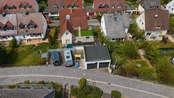 Smart-Parking-Erträge: Das separate Garagengebäude (unten Wohnen, oben Doppelgaragen) ist ein Renditebeschleuniger. Die Tore der Doppelgaragen sind modern via App steuerbar – ein Premium-Feature, das überdurchschnittliche Stellplatzmieten ermöglicht.