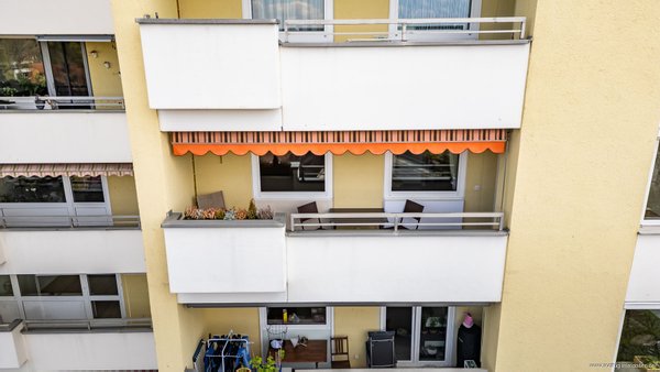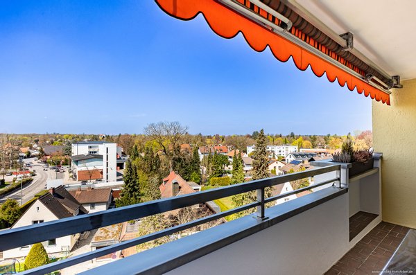Ein echtes Highlight ist der überdachte Außenbereich (mit Markise) in Westausrichtung und toller Aussicht. Aufgrund der hohen Lage im 5. Obergeschoss genießen Sie eine hervorragende Aussicht mit Garantie für unvergessliche Sonnenuntergänge - der perfekte Ort für entspannte Abende mit Familie und Freunden.
