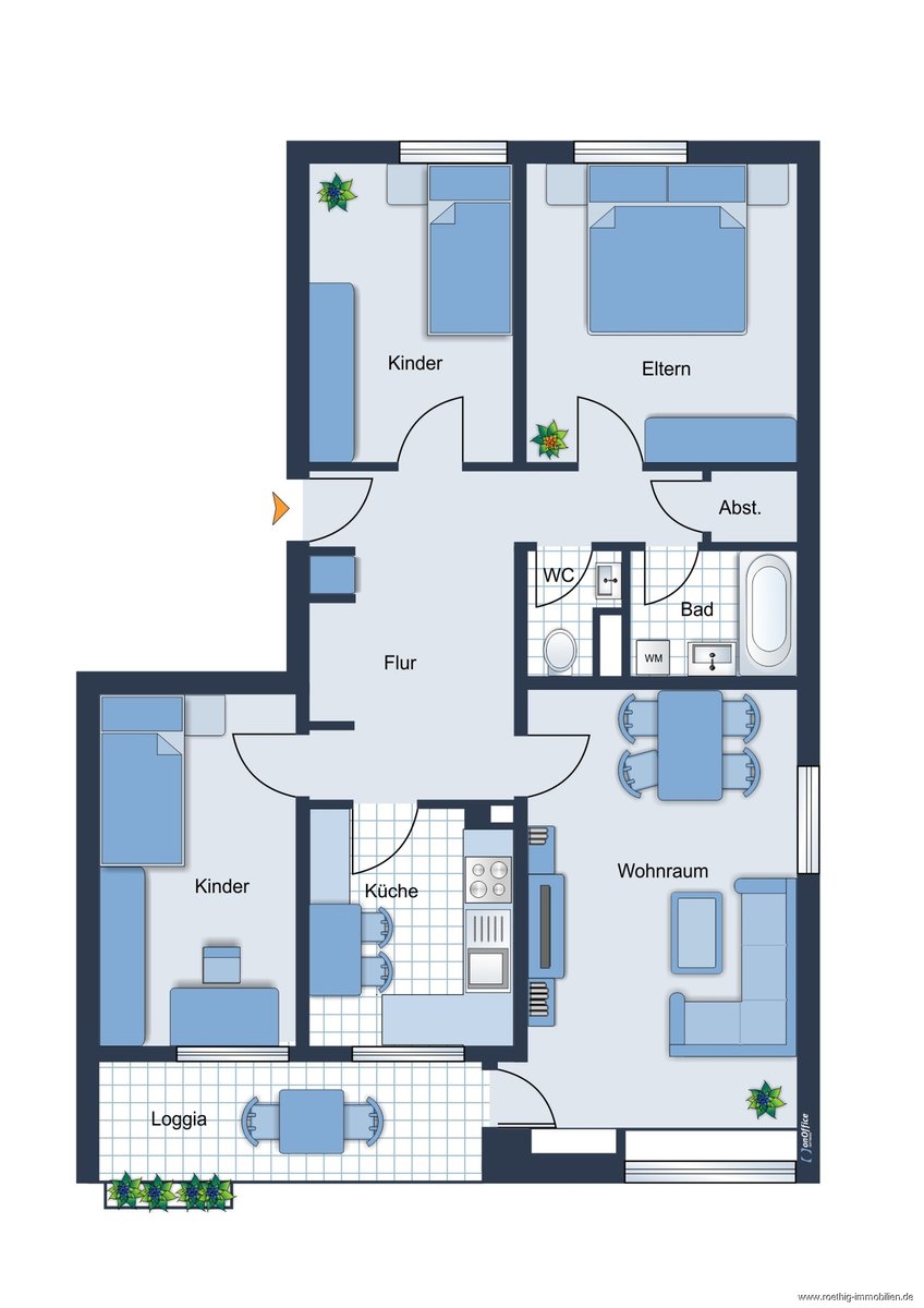 Angrenzend zur Küche ist ein weiteres, gut geschnittenes Zimmer ansässig, welches sich ebenfalls ideal als Kinder- bzw. Arbeitszimmer anbietet.