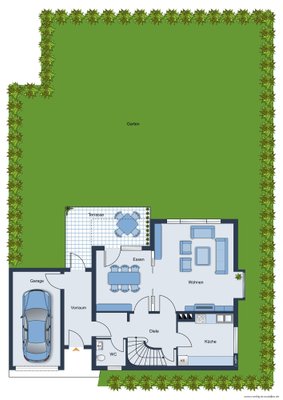 Eingebettet in eine harmonische, einrahmende Bepflanzung entsteht ein grüner, uneinsehbarer Wohlfühlort für Ihre Familie - & gegebenfalls Ihre vierbeinigen Familienmitglieder. Hier bietet sich dank der durchdacht platzierten Terrassenfläche der optimale Ort für Grillabende, Sonnenliegen und sämtliche Outdoor-Aktivitäten. Mit unterschiedlichsten Bereichen wie einem durch eine Bauminsel leicht abgetrennten Bereich für Gemüse & Blumenbeete, entsteht auf der weitläufigen Gartenfläche in Südausrichtung ein straßenabgewandtes, naturbelassenes Refugium mit zahlreichen sonnenverwöhnten Plätzen.
