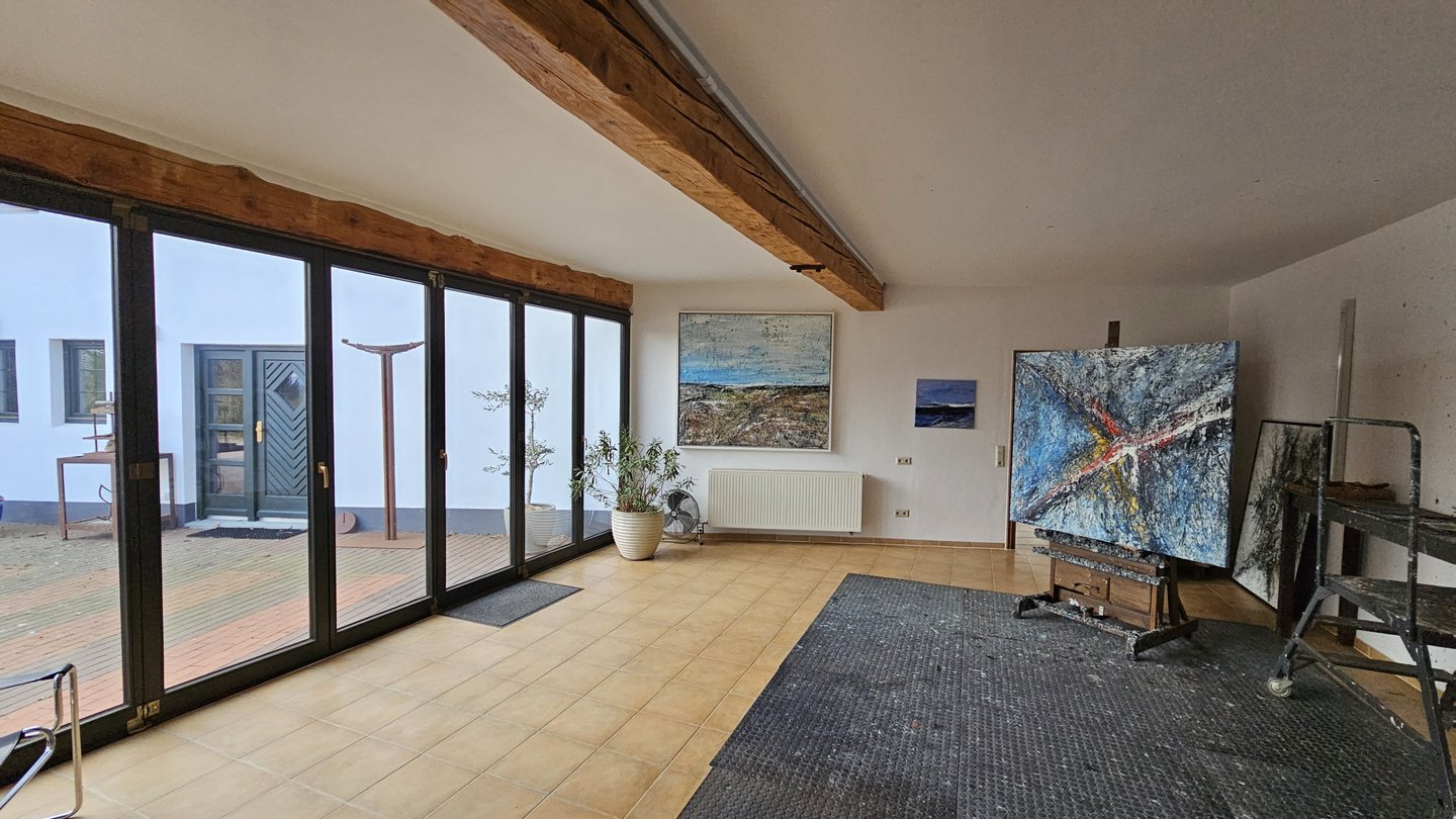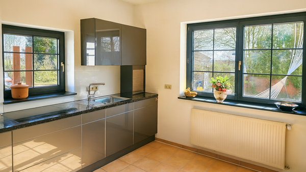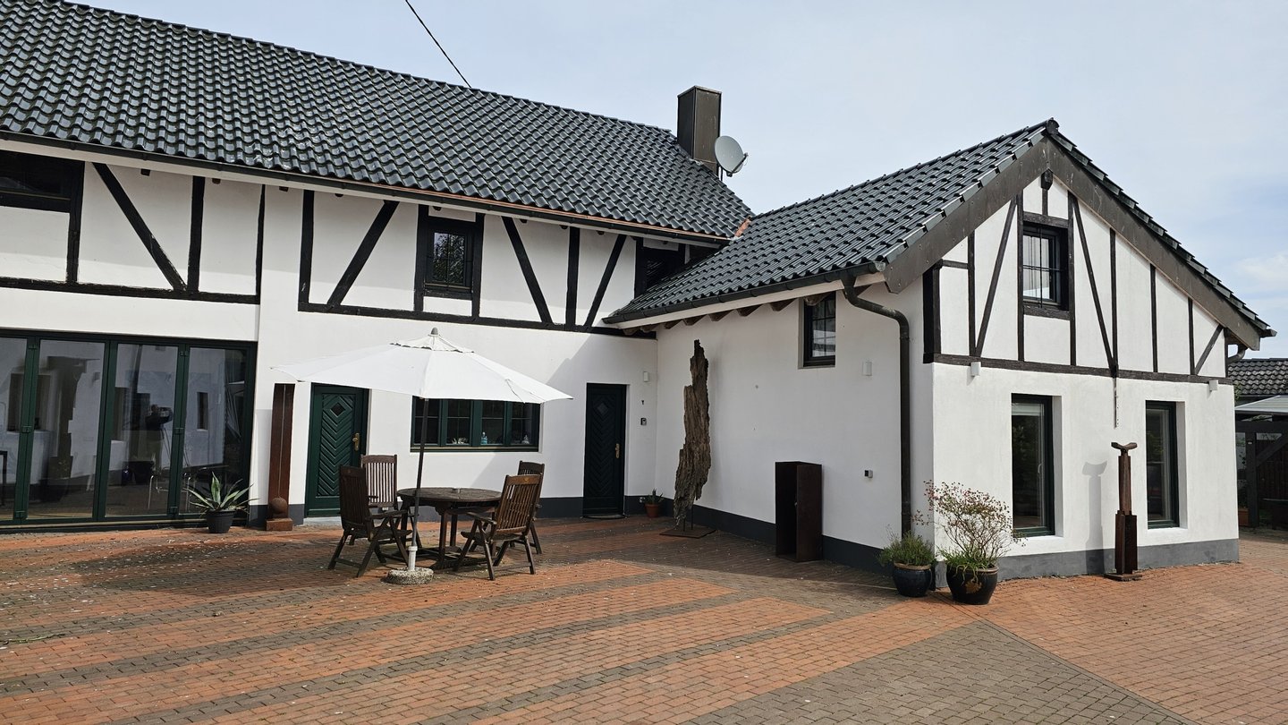 Die Immobilie, die seinerzeit aus einem Bauernhof entstanden ist, überzeugt nicht nur durch ihre beeindruckende Architektur, sondern auch durch eine hochwertige Ausstattung. Der Boden in der großen Halle besteht aus erstklassigem Parkett, das zusammen mit der Fußbodenheizung für ein angenehmes Raumklima sorgt. Die übrigen Räume sind mit hochwertigem Vinyl ausgestattet. Die Türen, ebenso wie die übrigen Holzarbeiten, sind von hoher Qualität. Die Heizungsanlage ist modern (2020) und energieeffizient. Die Badezimmer sind mit modernen Sanitärinstallationen ausgestattet und strahlen Eleganz aus. Die Küche ist mit allen notwendigen Geräten ausgestattet und bietet viel Platz zum Kochen. Der Außenbereich der Immobilie ist ebenso beeindruckend. Der Garten ist liebevoll angelegt und bietet viel Platz zum Entspannen. Abstellmöglichkeiten gibt es für bis zu acht Fahrzeuge.
