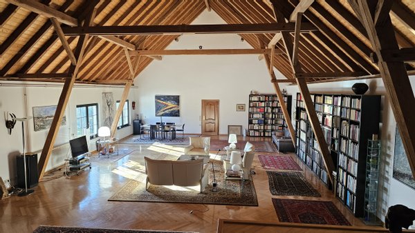 Die Immobilie, die seinerzeit aus einem Bauernhof entstanden ist, überzeugt nicht nur durch ihre beeindruckende Architektur, sondern auch durch eine hochwertige Ausstattung. Der Boden in der großen Halle besteht aus erstklassigem Parkett, das