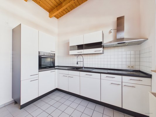 Die Wohnung beeindruckt zusätzlich durch sehr hohe Decken mit sichtbarem Dachstuhl, was ein offenes und modernes Raumgefühl schafft. Große Fensterflächen sorgen für lichtdurchflutete Räume und eine angenehme Wohnatmosphäre.