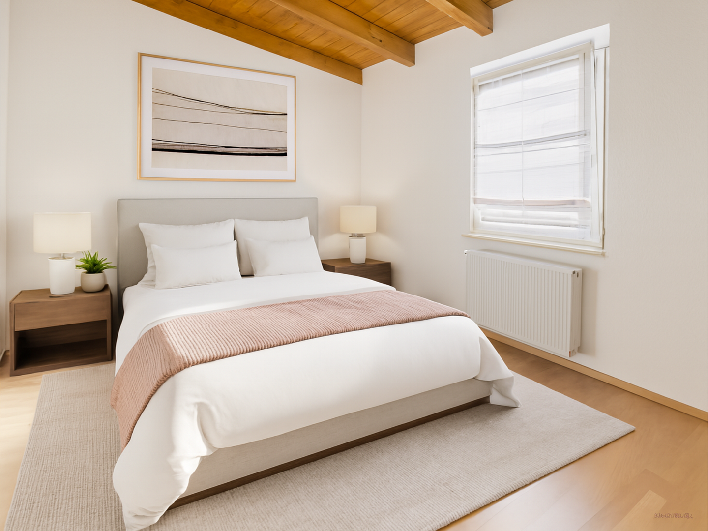 Die Wohnung beeindruckt zusätzlich durch sehr hohe Decken mit sichtbarem Dachstuhl, was ein offenes und modernes Raumgefühl schafft. Große Fensterflächen sorgen für lichtdurchflutete Räume und eine angenehme Wohnatmosphäre.
