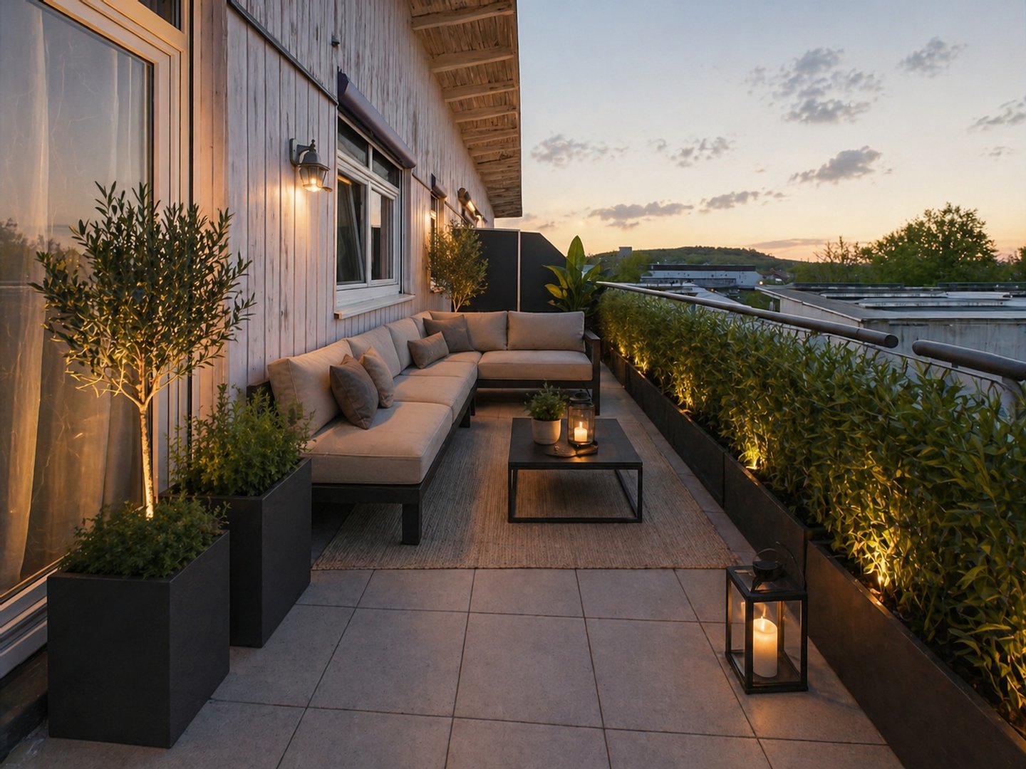 Ein absolutes Highlight ist der großzügige Balkon mit einer Fläche von ca. 21,5 m², der durch seine stabile Bauweise vielseitige Nutzungsmöglichkeiten bietet – selbst das Aufstellen eines Pools ist hier realisierbar. Durch die Lage im obersten Geschoss genießen Sie hier viel Sonne, einen freien Ausblick sowie ein hohes Maß an Privatsphäre.