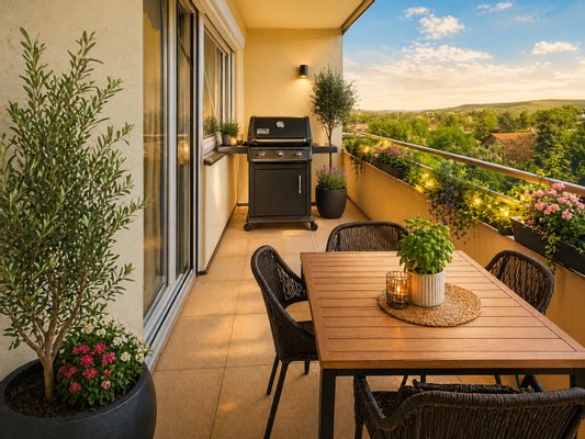 Die hellen Wohnräume schaffen durch große Fensterflächen eine freundliche und angenehme Wohnatmosphäre. Ein besonderes Highlight ist der Balkon, von dem aus sich ein schöner Blick ins Grüne genießen lässt – ideal für entspannte Stunden im Freien.