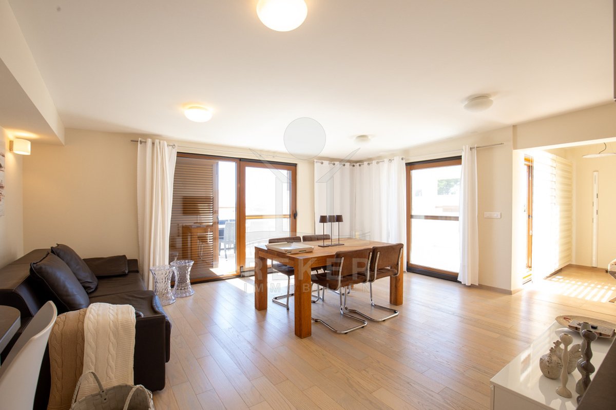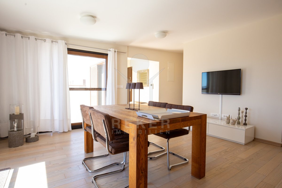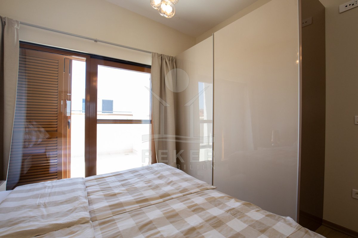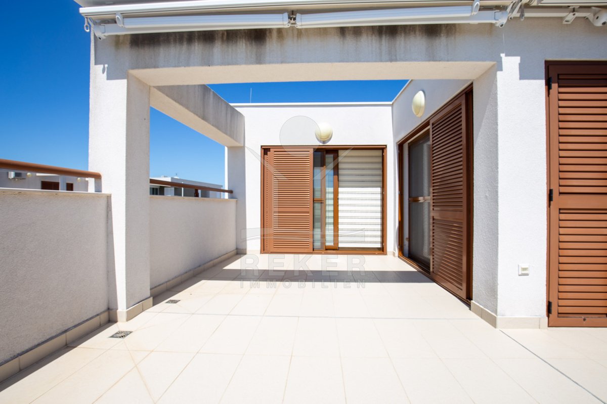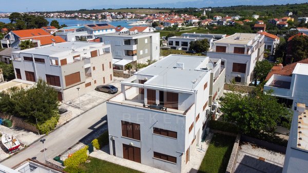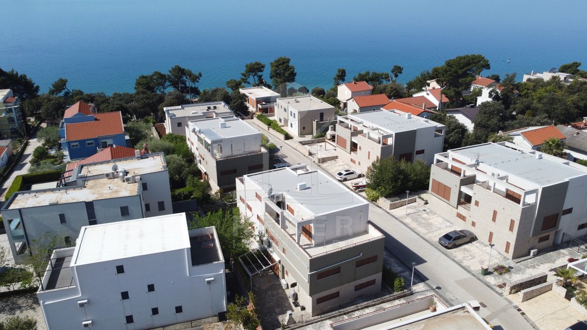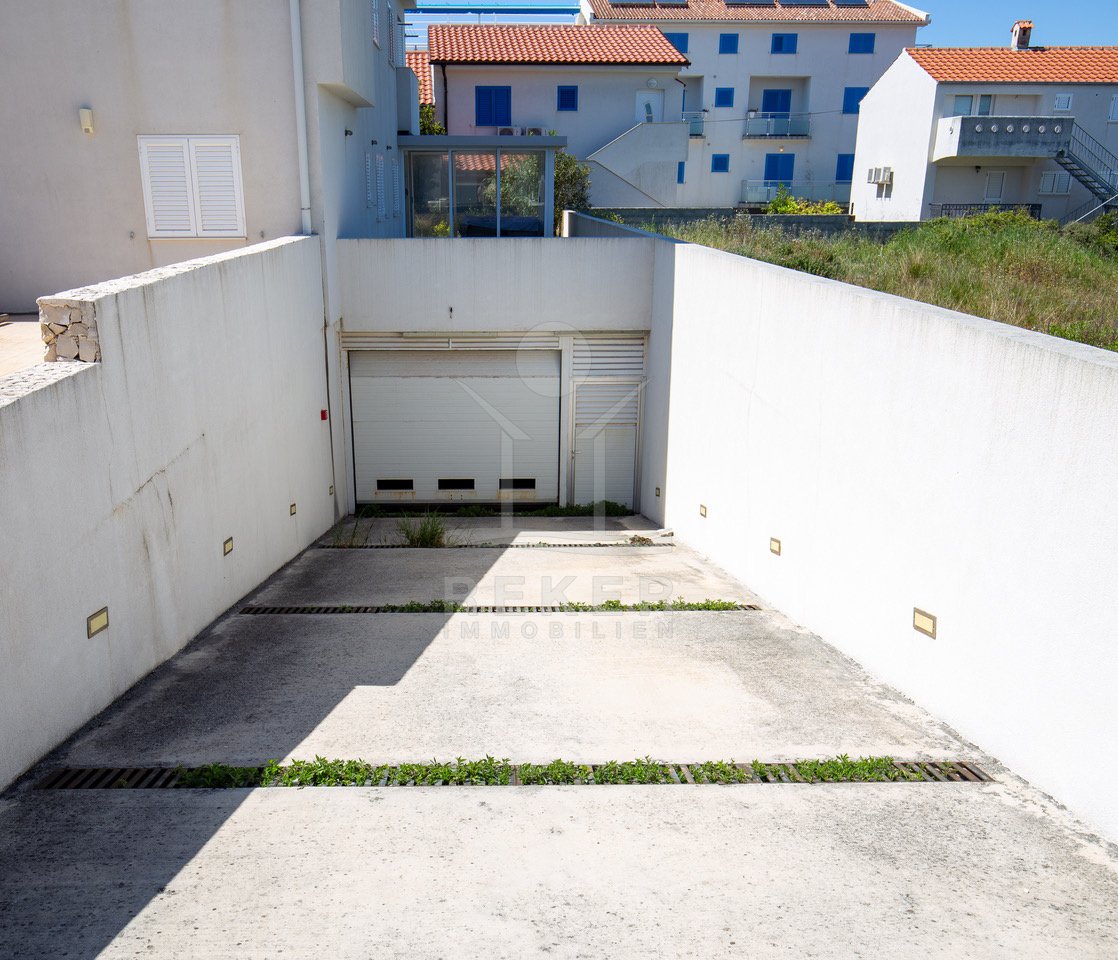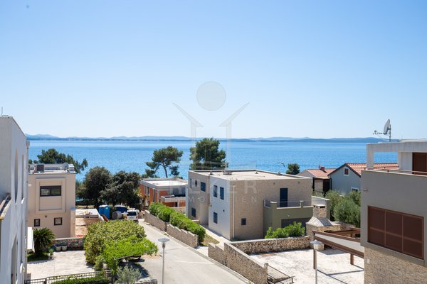 Dieses exklusive Penthouse befindet sich nahe Zadar, in einer ruhigen, grünen Umgebung der Gespanschaft Zadar. Die Küste und der schöne Strand sind nur 100 m entfernt. So erreichen Sie das Ufer in wenigen Schritten. Die Wohnung befindet sich im zweiten Stock eines kleinen, gepflegten Wohnhauses mit insgesamt fünf Wohneinheiten und umfasst die gesamte Etage. Zur Immobilie gehören ein Parkplatz mit 14 m², eine geräumige Tiefgarage mit 30 m² sowie insgesamt drei eigene Parkplätze. Die private Anlage mit kontrollierter Zufahrt über eine Rampe betont den geschützten und exklusiven Charakter.