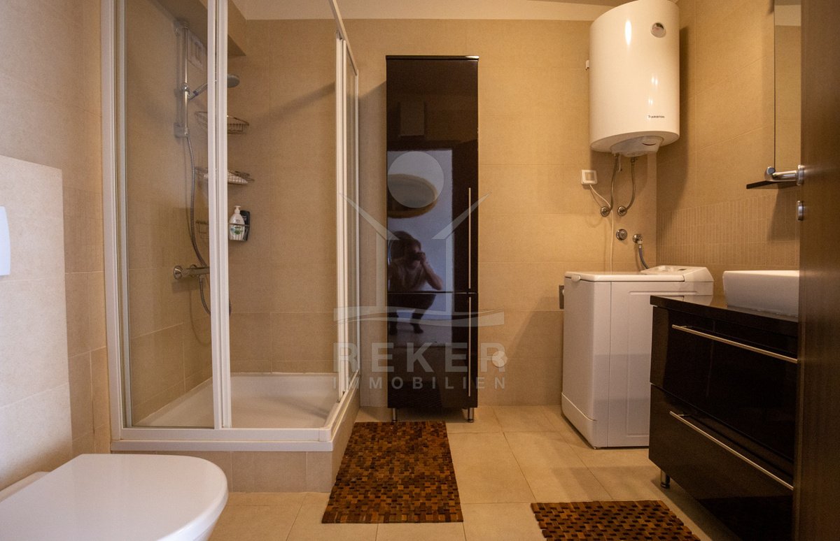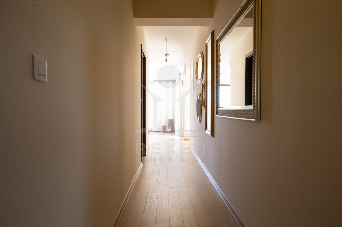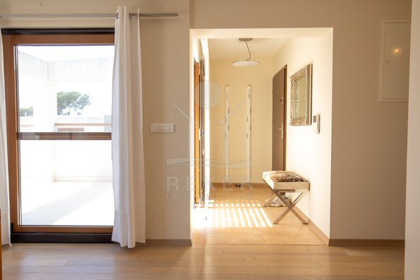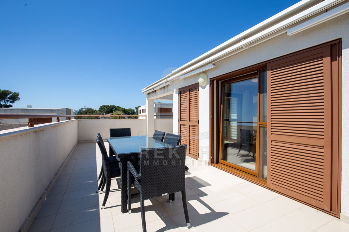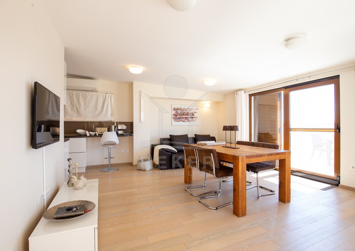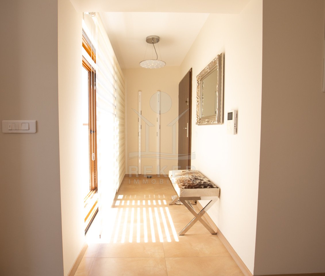 Dieses exklusive Penthouse befindet sich nahe Zadar, in einer ruhigen, grünen Umgebung der Gespanschaft Zadar. Die Küste und der schöne Strand sind nur 100 m entfernt. So erreichen Sie das Ufer in wenigen Schritten. Die Wohnung befindet sich im zweiten Stock eines kleinen, gepflegten Wohnhauses mit insgesamt fünf Wohneinheiten und umfasst die gesamte Etage. Zur Immobilie gehören ein Parkplatz mit 14 m², eine geräumige Tiefgarage mit 30 m² sowie insgesamt drei eigene Parkplätze. Die private Anlage mit kontrollierter Zufahrt über eine Rampe betont den geschützten und exklusiven Charakter.