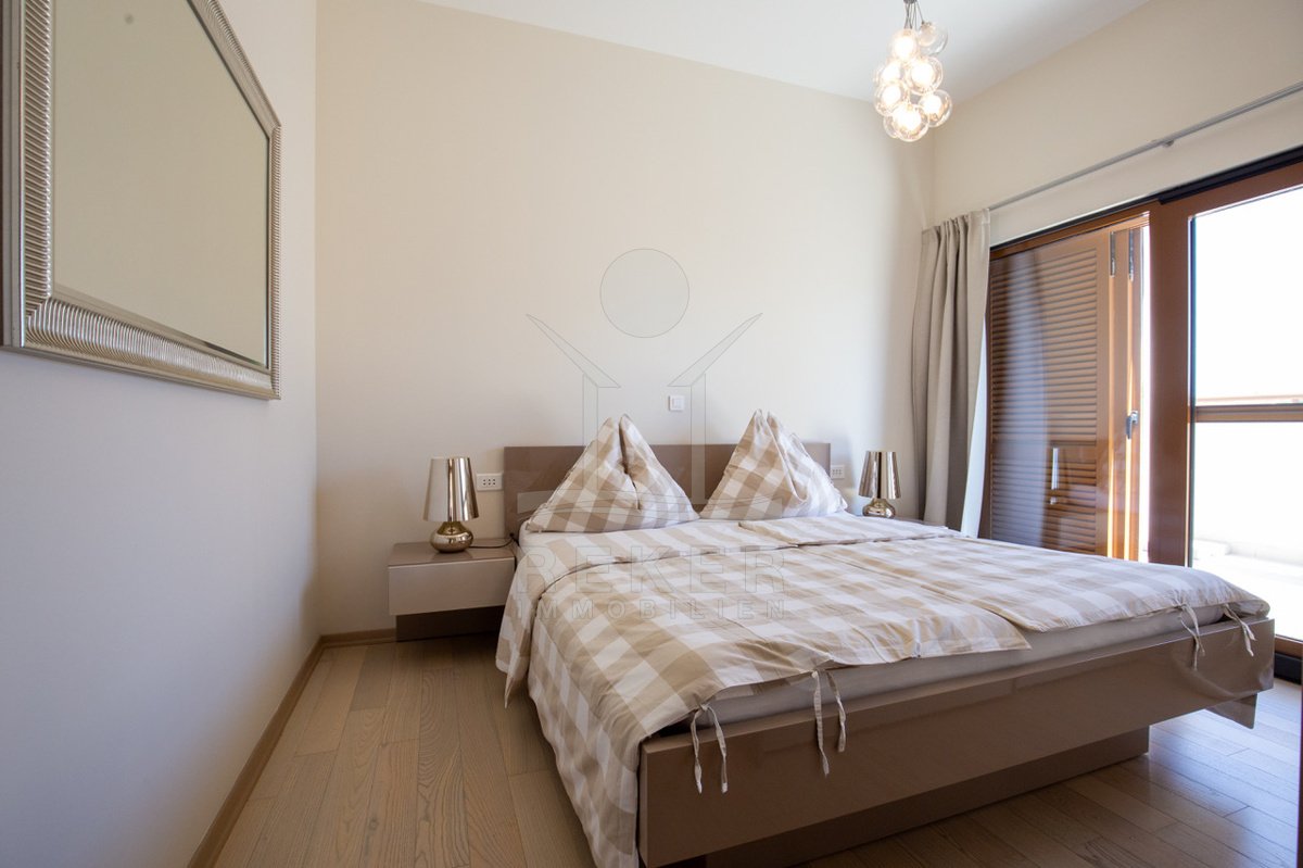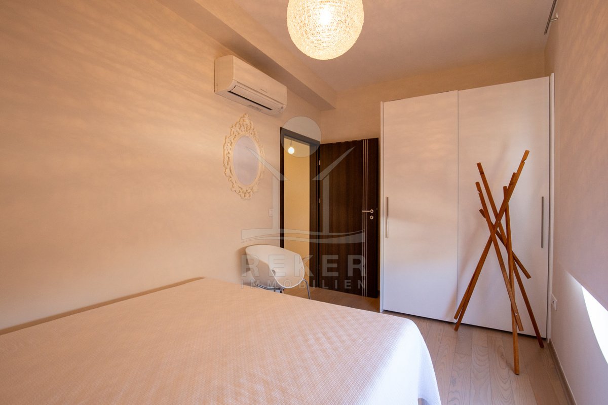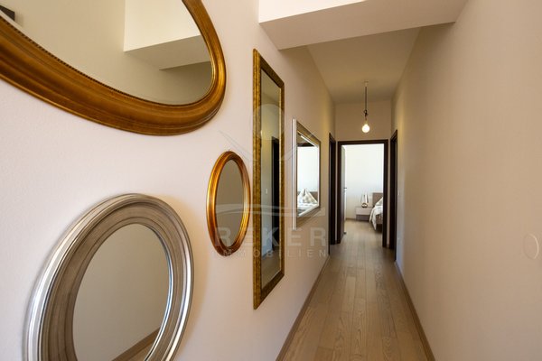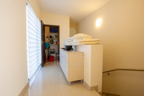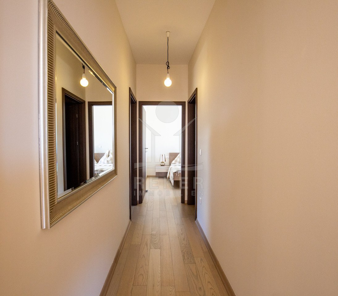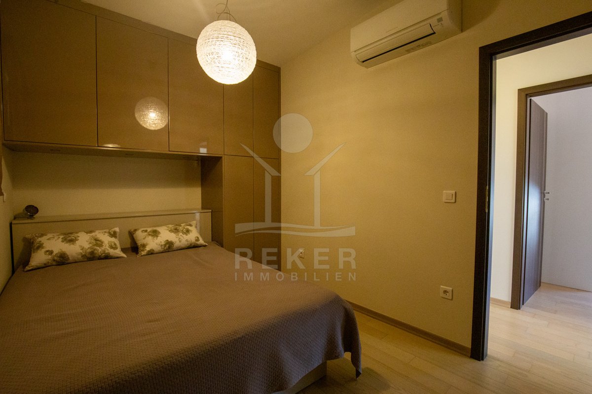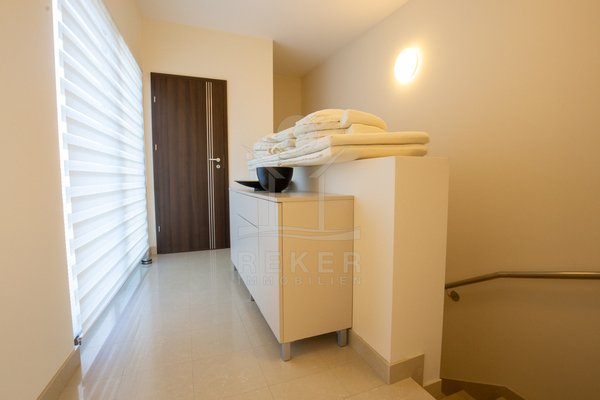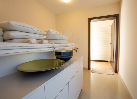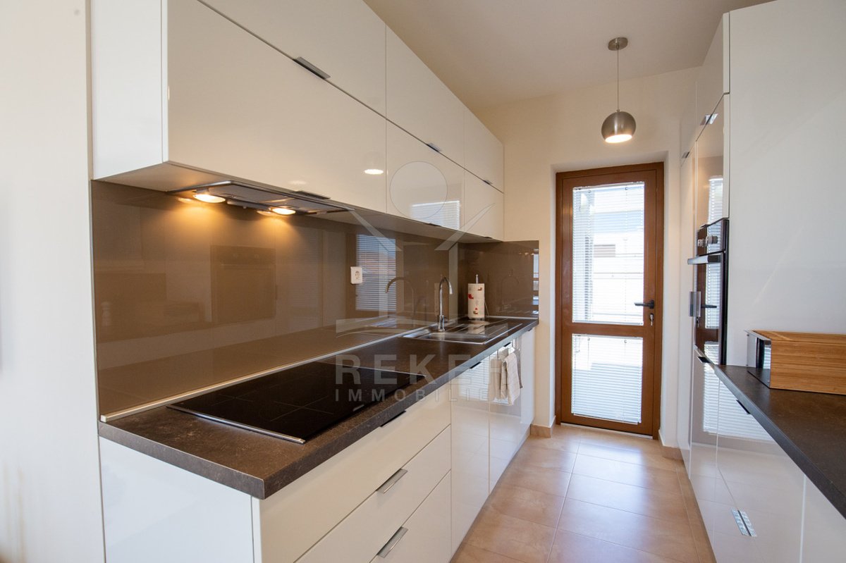 Dieses exklusive Penthouse befindet sich nahe Zadar, in einer ruhigen, grünen Umgebung der Gespanschaft Zadar. Die Küste und der schöne Strand sind nur 100 m entfernt. So erreichen Sie das Ufer in wenigen Schritten. Die Wohnung befindet sich im zweiten Stock eines kleinen, gepflegten Wohnhauses mit insgesamt fünf Wohneinheiten und umfasst die gesamte Etage. Zur Immobilie gehören ein Parkplatz mit 14 m², eine geräumige Tiefgarage mit 30 m² sowie insgesamt drei eigene Parkplätze. Die private Anlage mit kontrollierter Zufahrt über eine Rampe betont den geschützten und exklusiven Charakter.