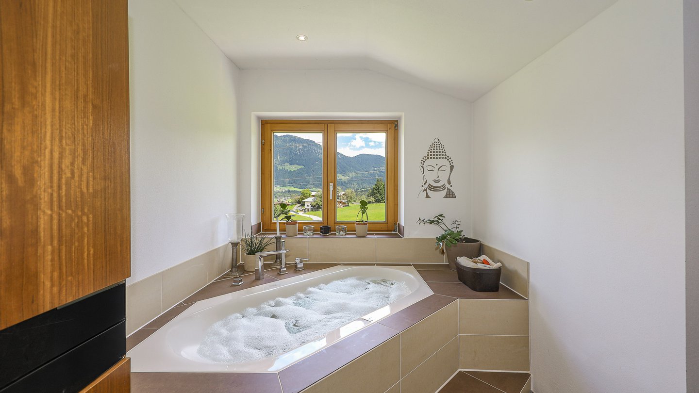 Vom Haus hat man einen wunderschönen Ausblick auf die imposanten Loferer Steinberge, das Jakobskreuz bis hin zum Wilden Kaiser.